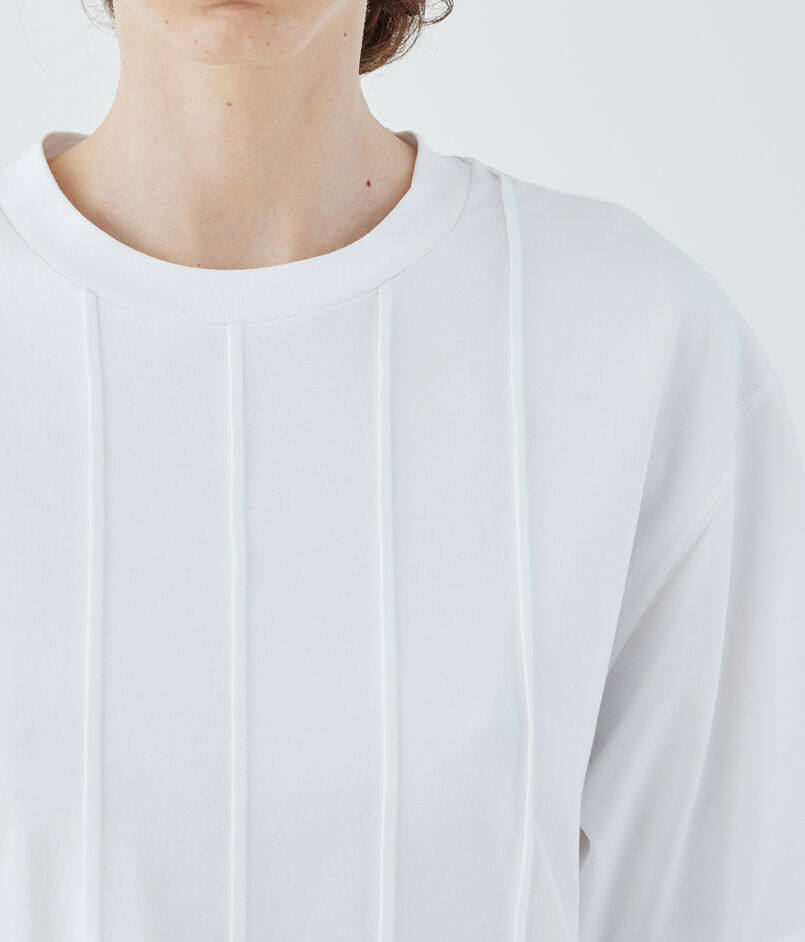 細番手の糸を多本撚りにし、度詰めに織り上げたソフトなタッチの天竺ジャージー素材を使用したプルオーバー。