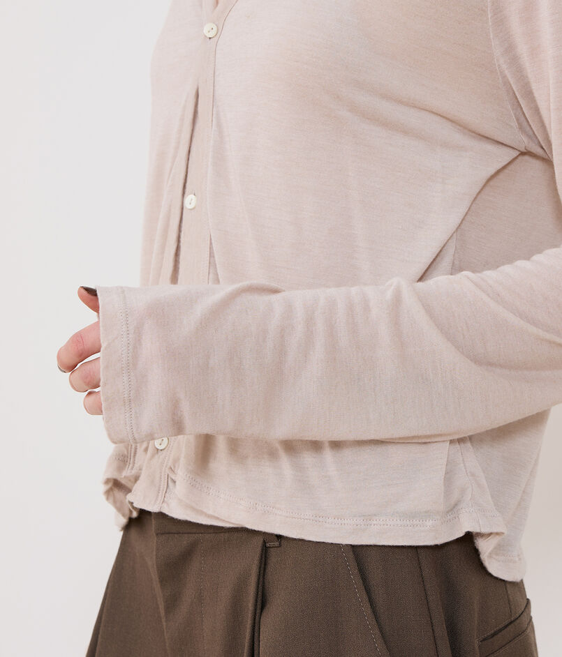 抜け感と女性らしさを両立させた新鮮な印象のカーディガン。