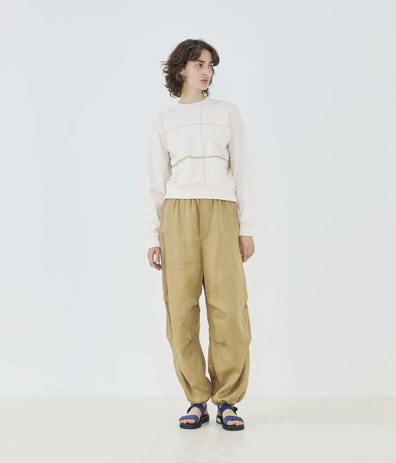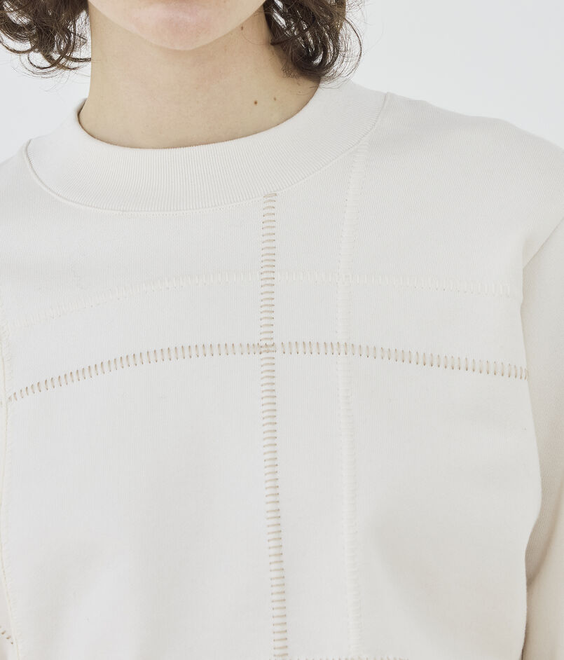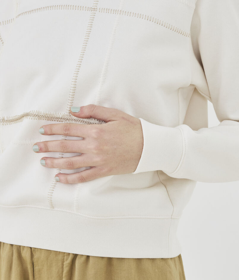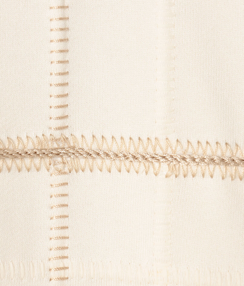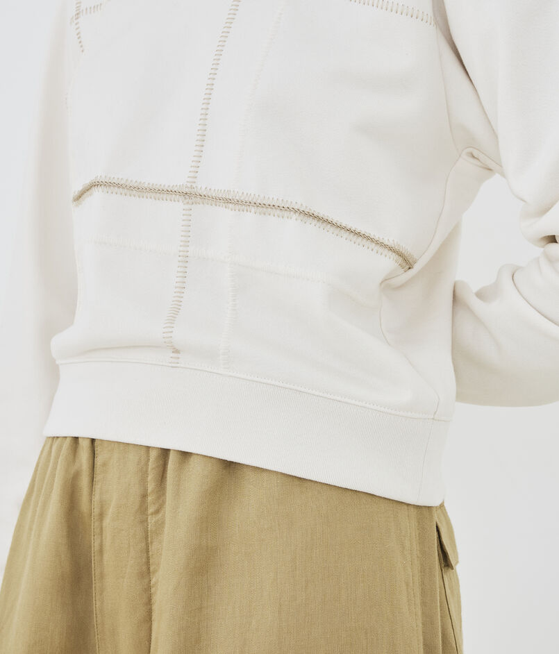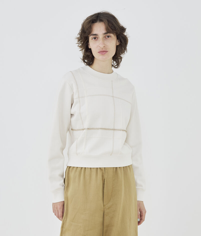 プルオーバーは前身頃にブランケットステッチとハマグリステッチの刺繍でチェック柄を表現しました。