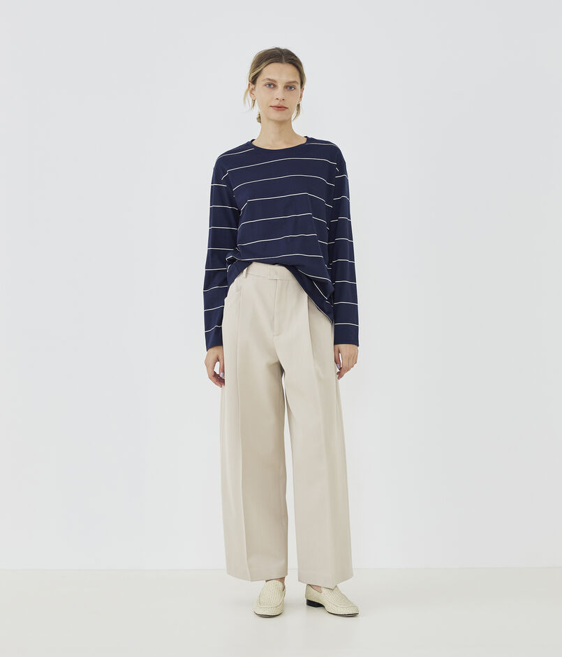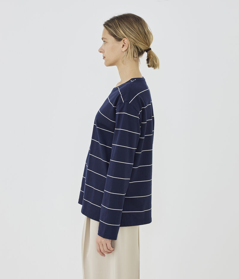 ゆったりとした身幅と着丈で身体のラインを拾わず、リラックスして着用いただける一枚。