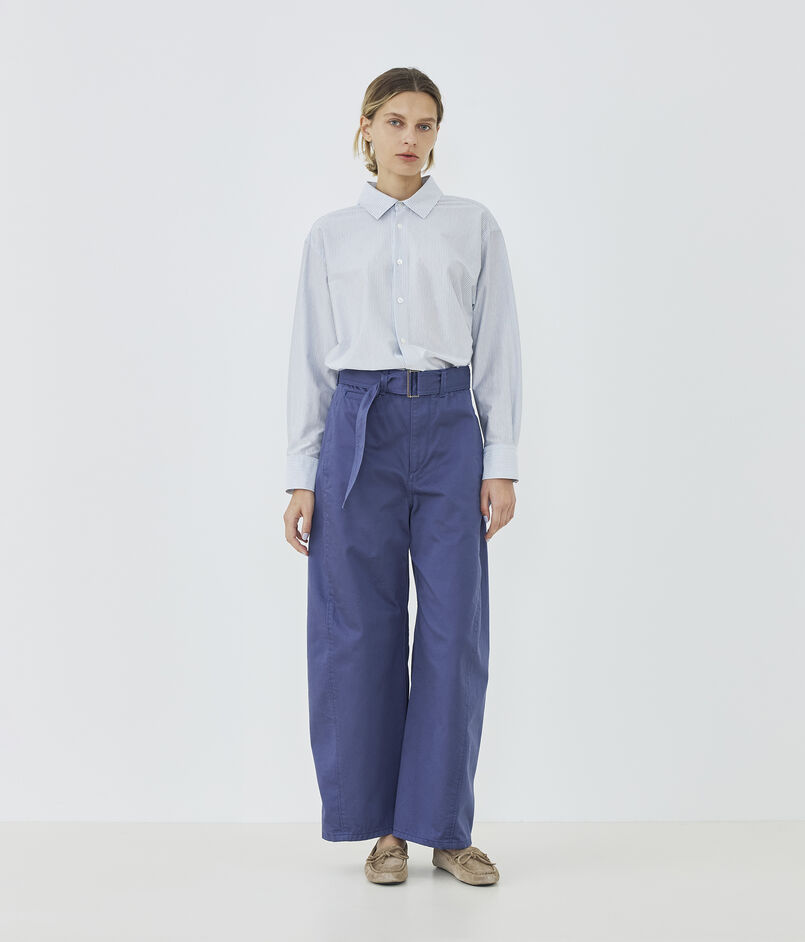 ショートレングスシャツはコンパクトな丈感でバランスが取りやすく、ワイドパンツやロングスカートのボリュームボトムスとも好相性です。