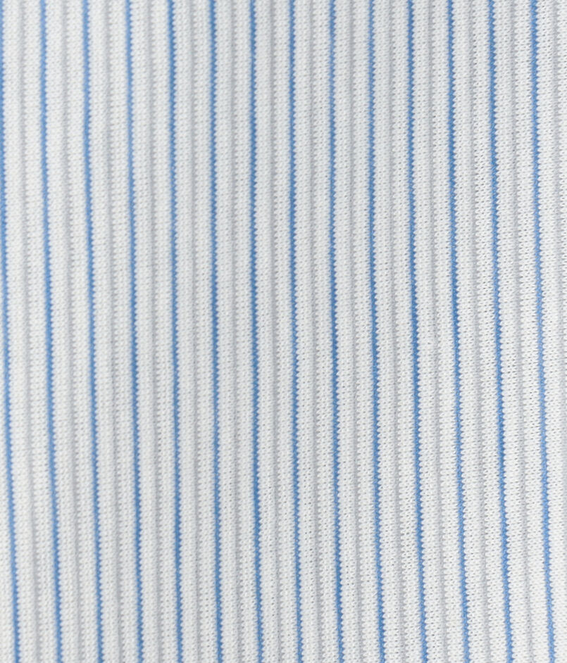 極細番手のコットン糸に毛羽を取り除く加工を施して編み目が見えないほどのハイゲージに編み立て、まるで布帛のようなクリアな表面感に仕上げました。
