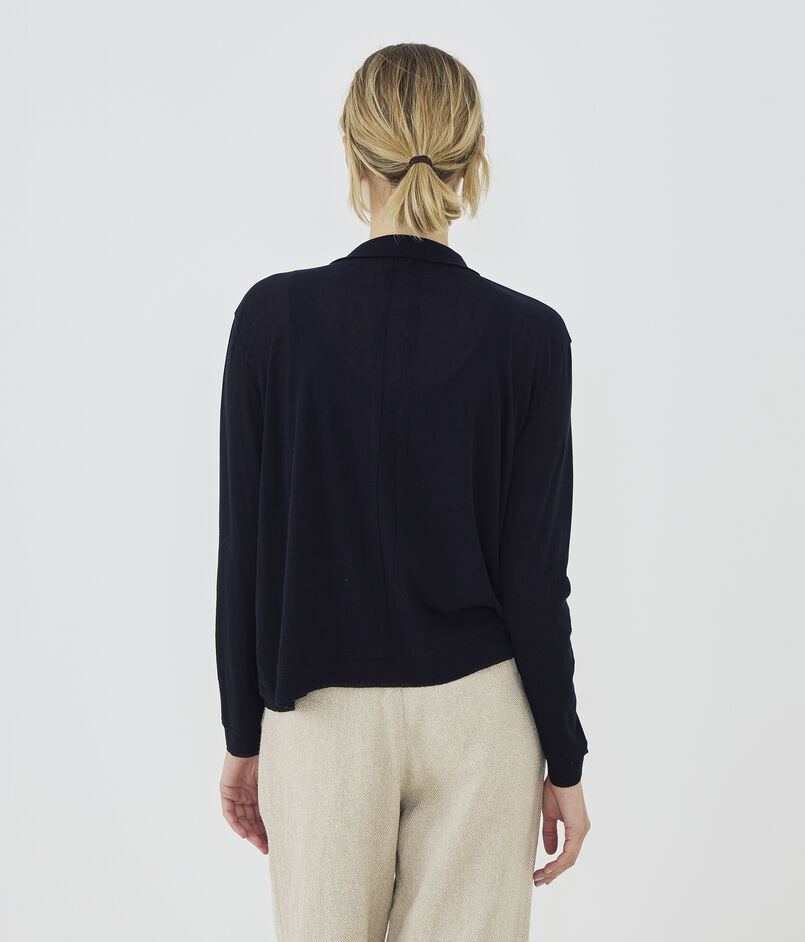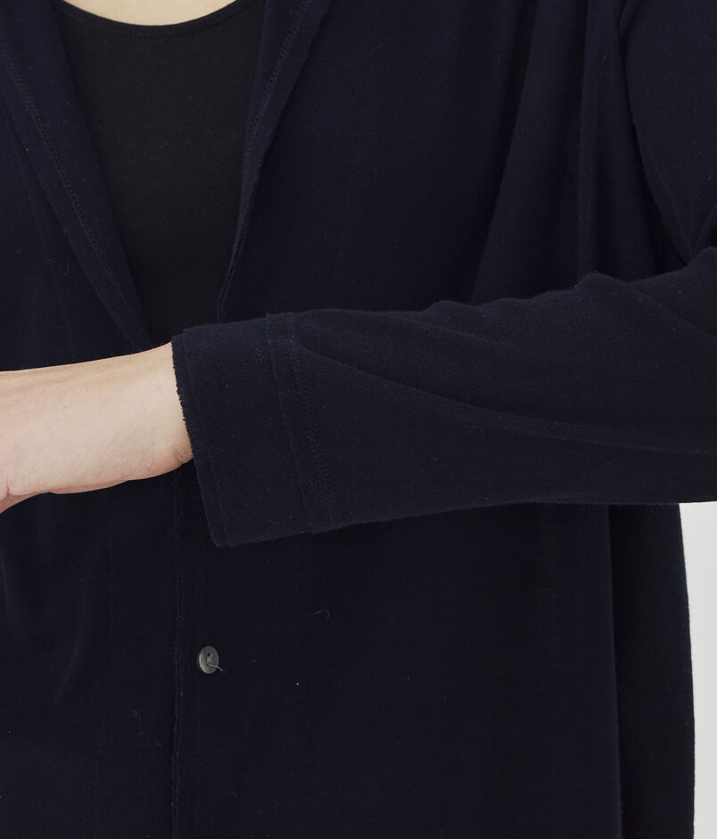 今季新登場のテーラードカーディガンはオープンカラーシャツのような印象の一着。