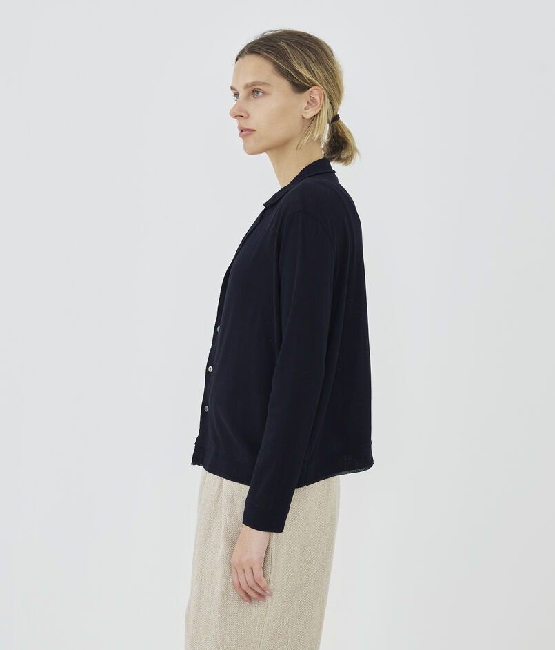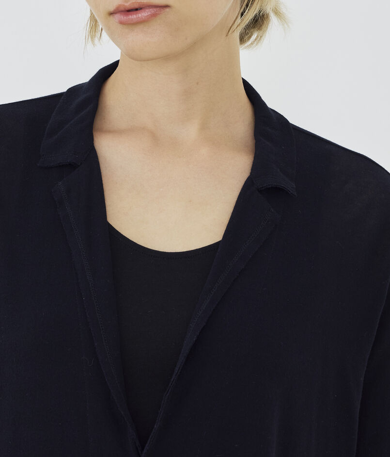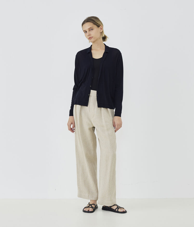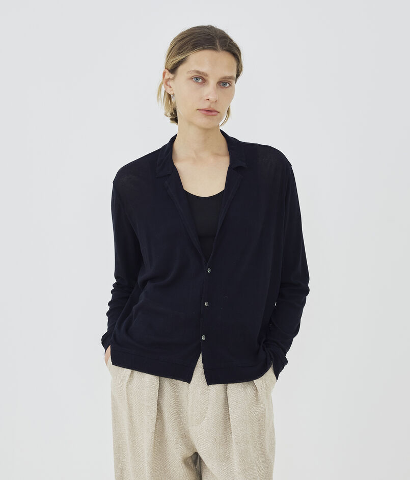 今季新登場のテーラードカーディガンはオープンカラーシャツのような印象の一着。