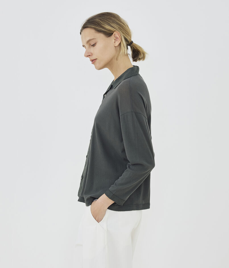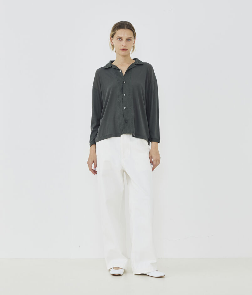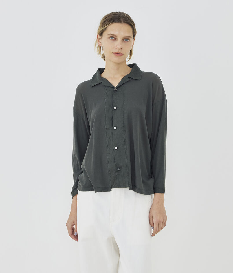 コットンガーゼフライス オープンカラーシャツ