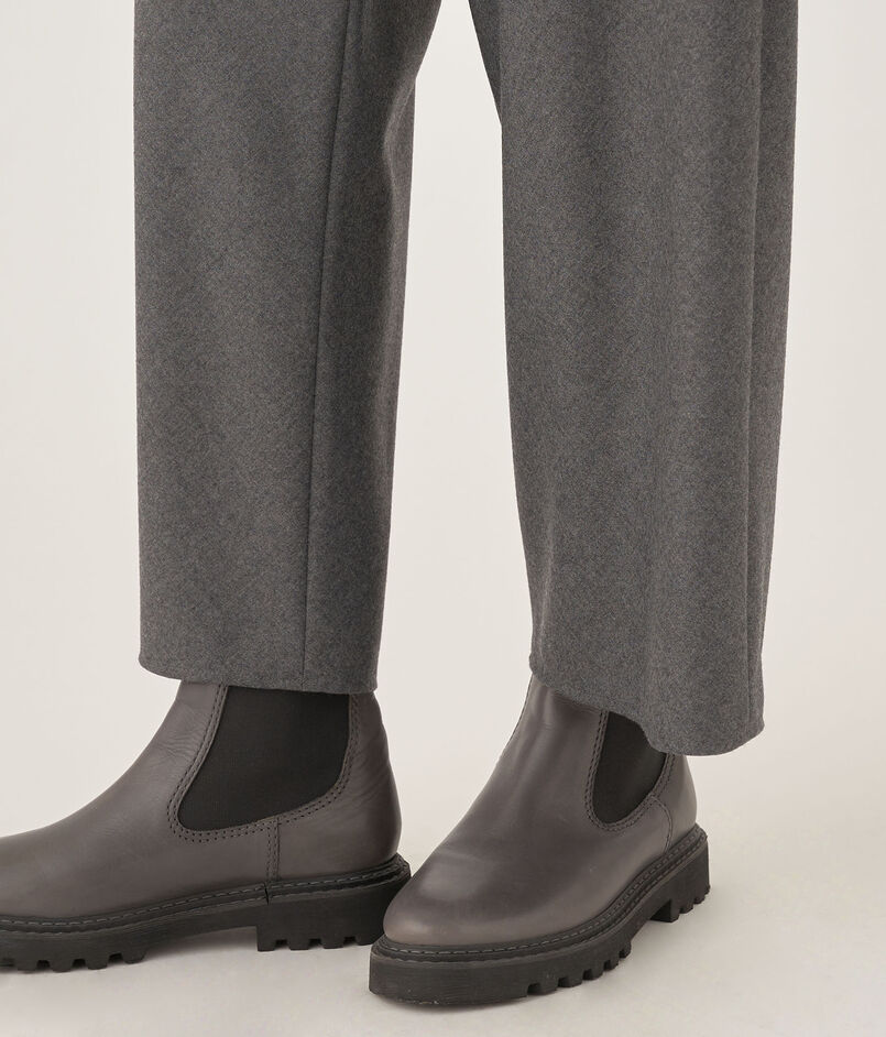 高品質な原料を使用し、ストレッチ糸を入れ織り上げたフラノ素材のパンツ。