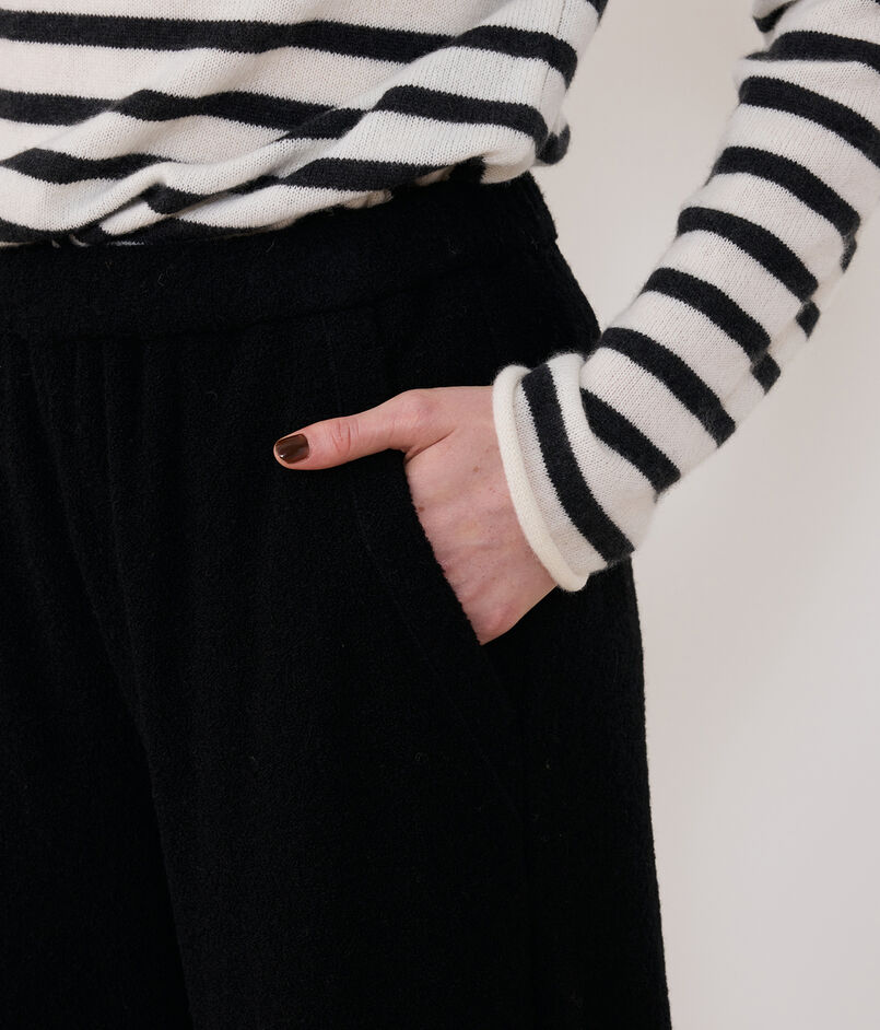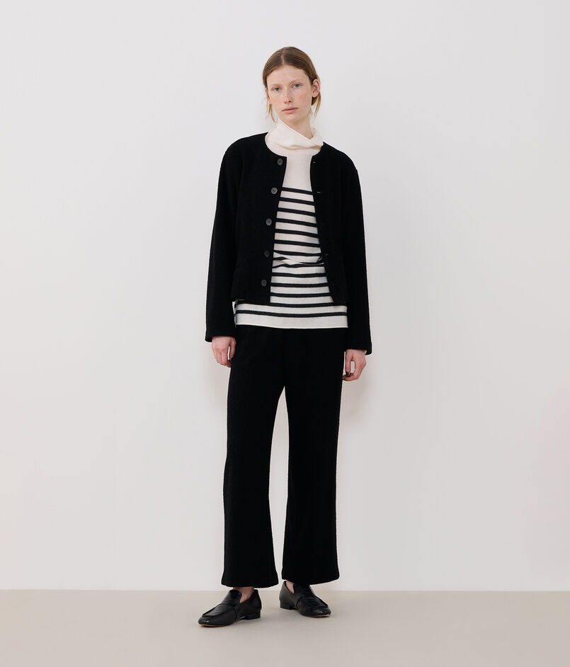 良質なウールをブークレー状にして編み立てた生地に特殊な熱加工を施した、膨らみともっちりとした風合いがありつつ、しなやかさも併せ持った素材感が特徴のファインブークレーシリーズ。