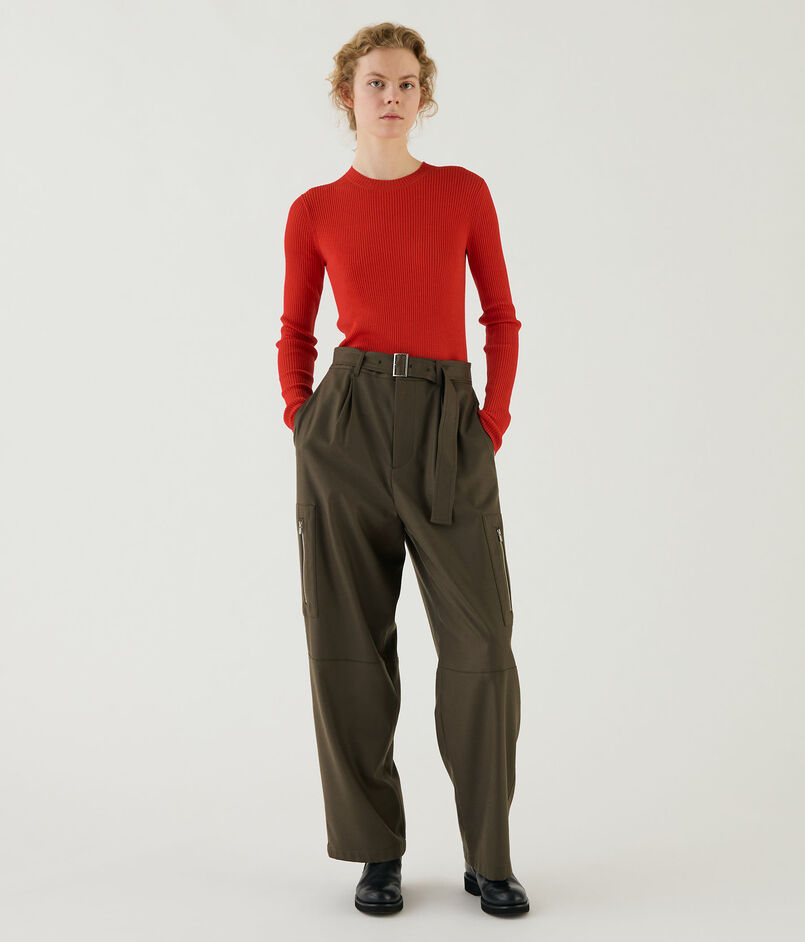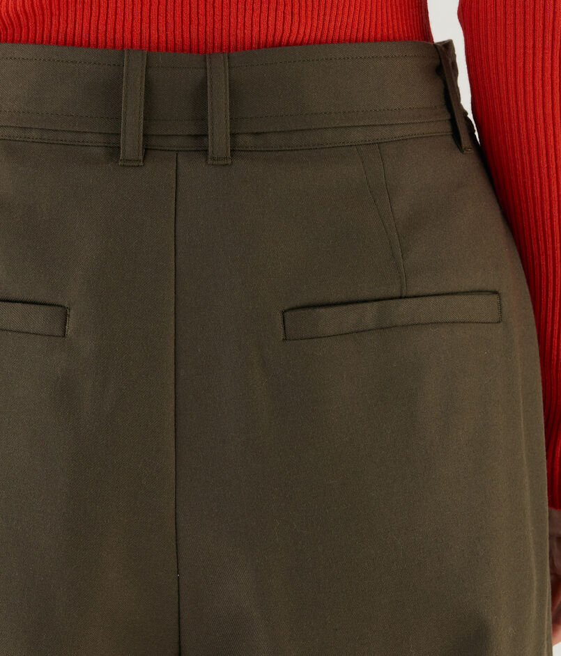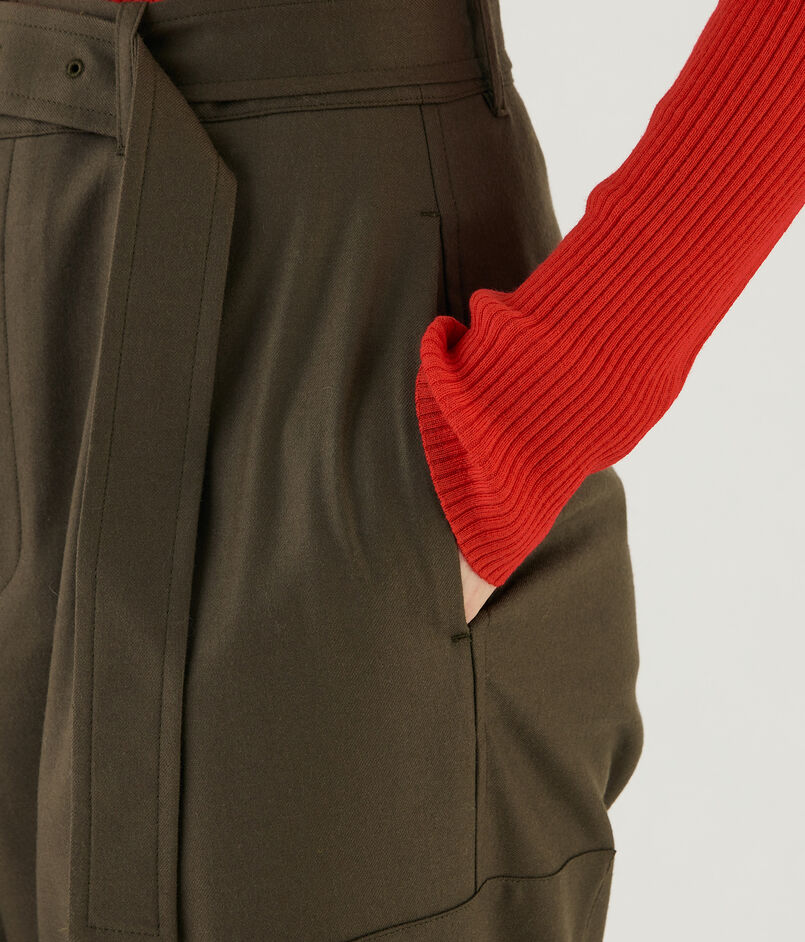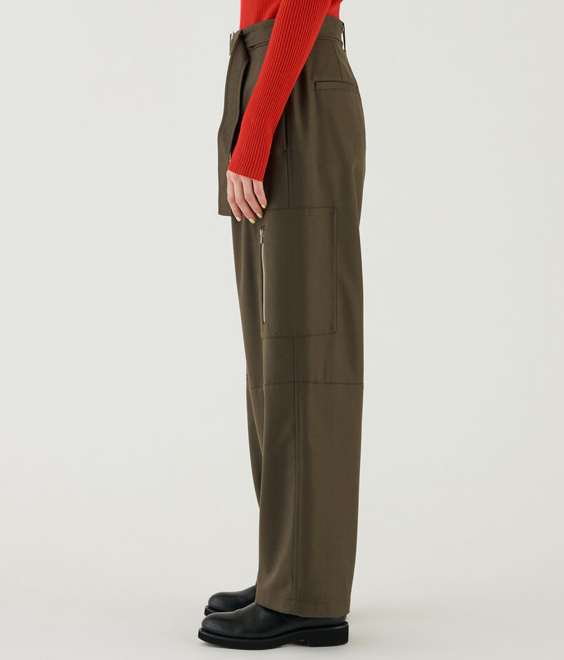 光沢感があり、ドレープ性のあるウールで作ることで洗練された印象をもたらしてくれる、〈GALERIE VIE〉ならではの一着。