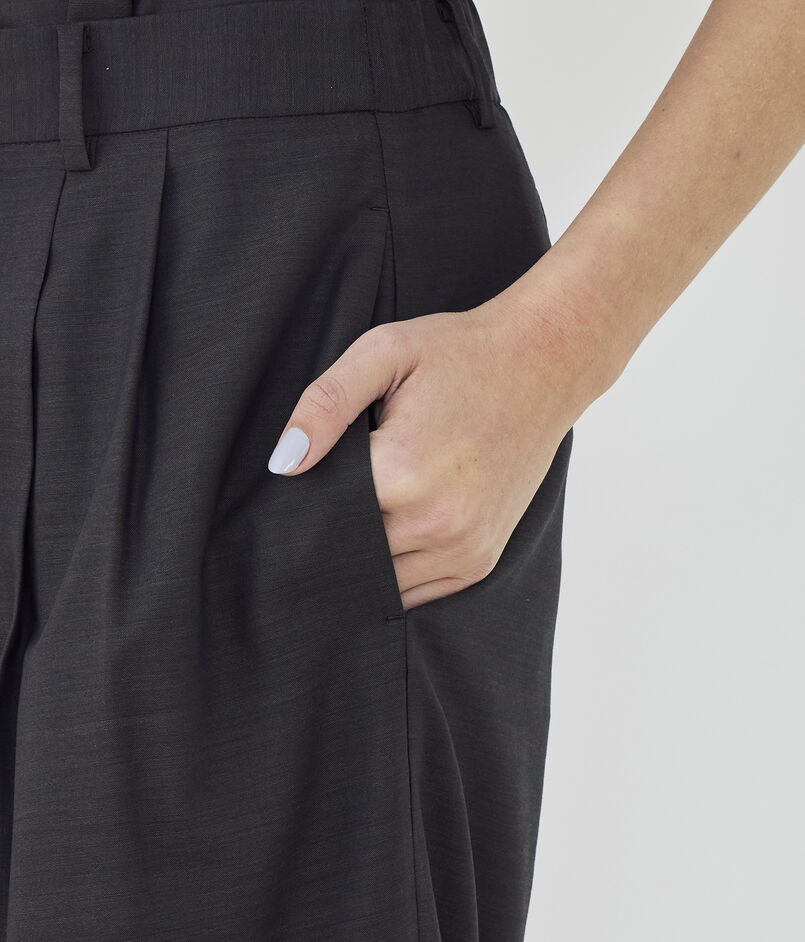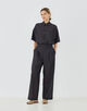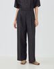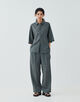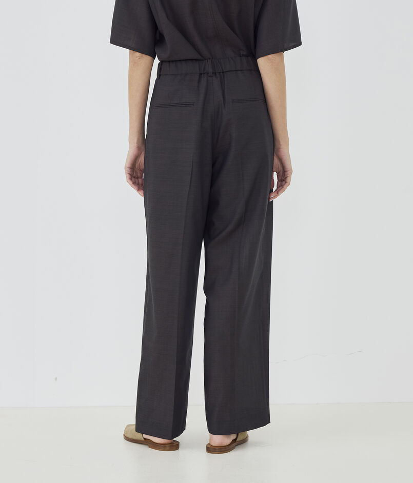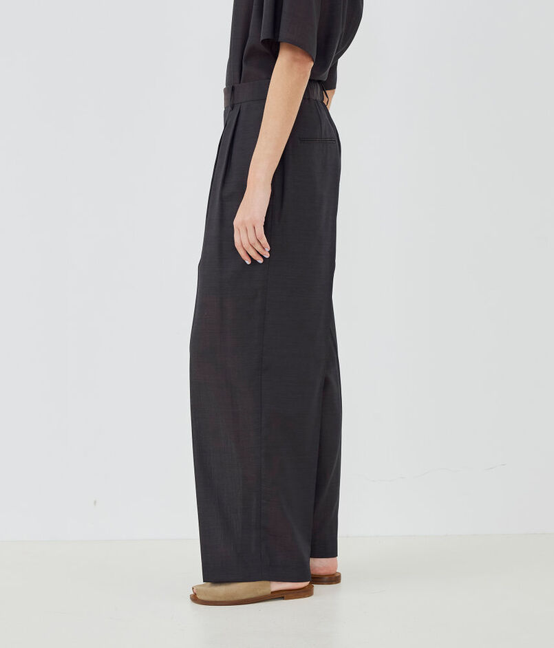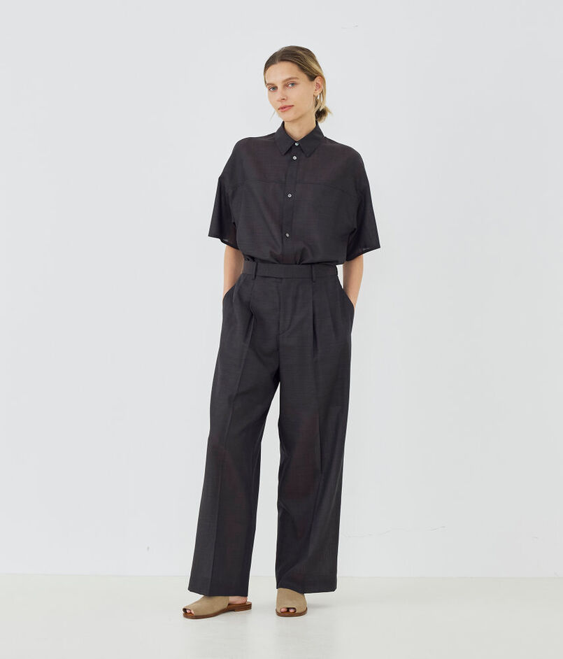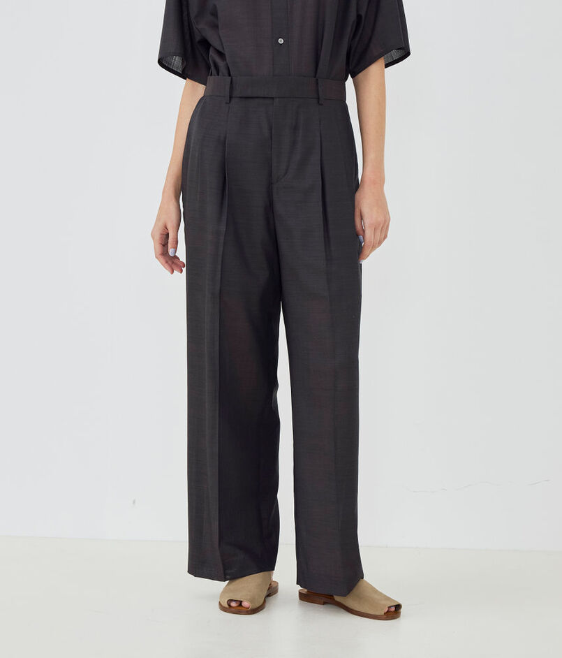 パンツは2タックのデザインと身体から離れたワイドシルエットでこなれ感のある一着。