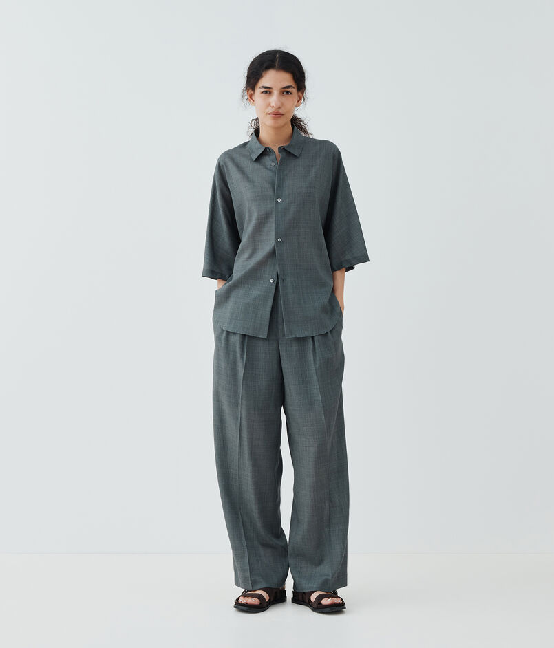 上質なウールならではの光沢と涼しくさらりとした素材感で、洗練された雰囲気を演出してくれるアイテムです。