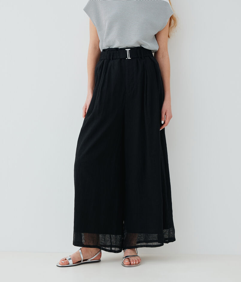 スカートのようなたっぷりとした分量感のあるワイドシルエットのパンツ。