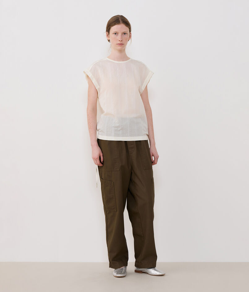 ウエストのギャザーディテールやゆったりとしたサイズ感でこなれ感のある着こなしが決まります。