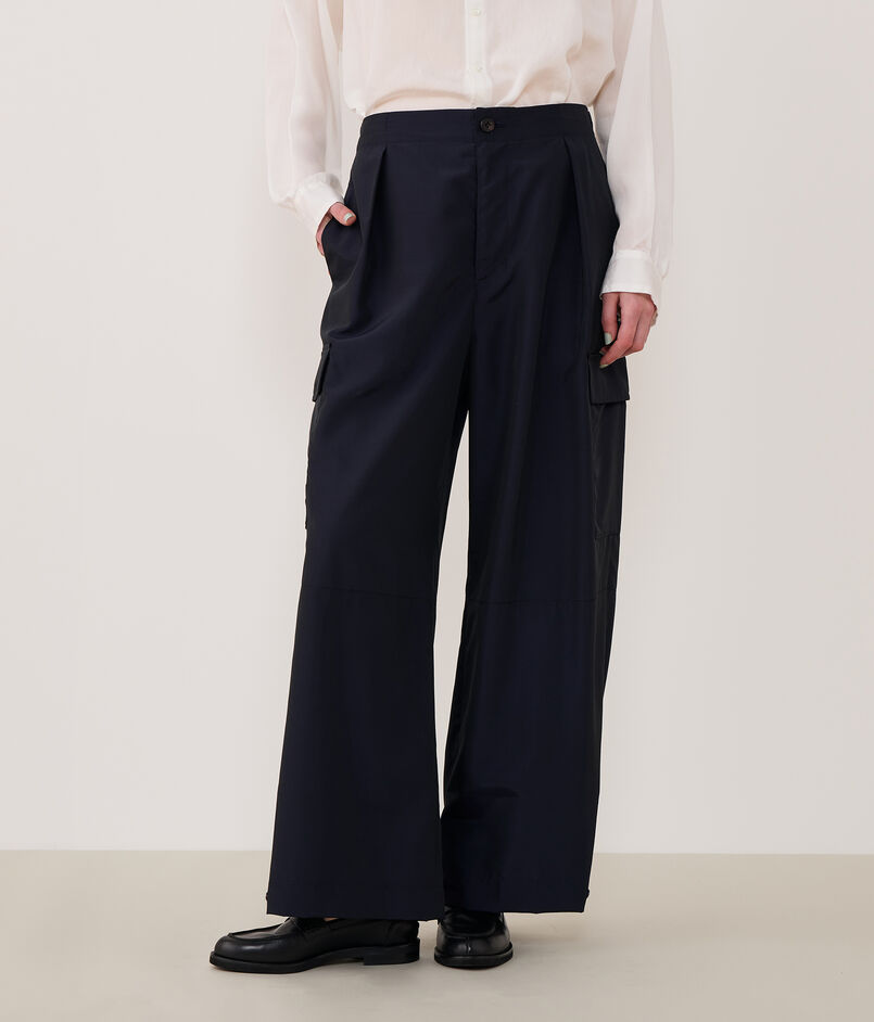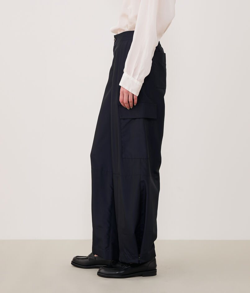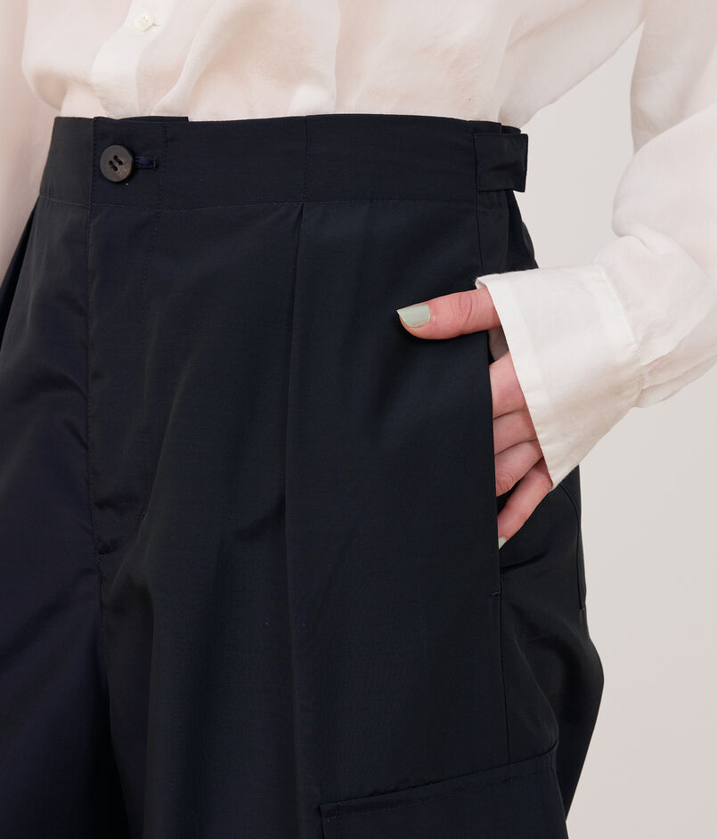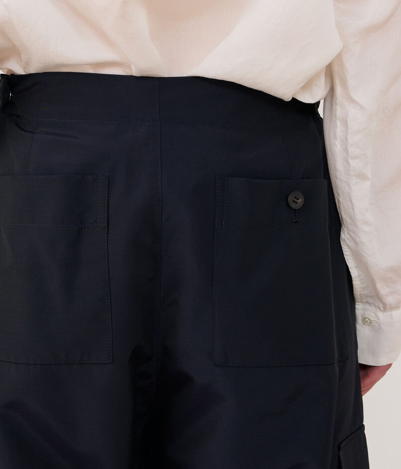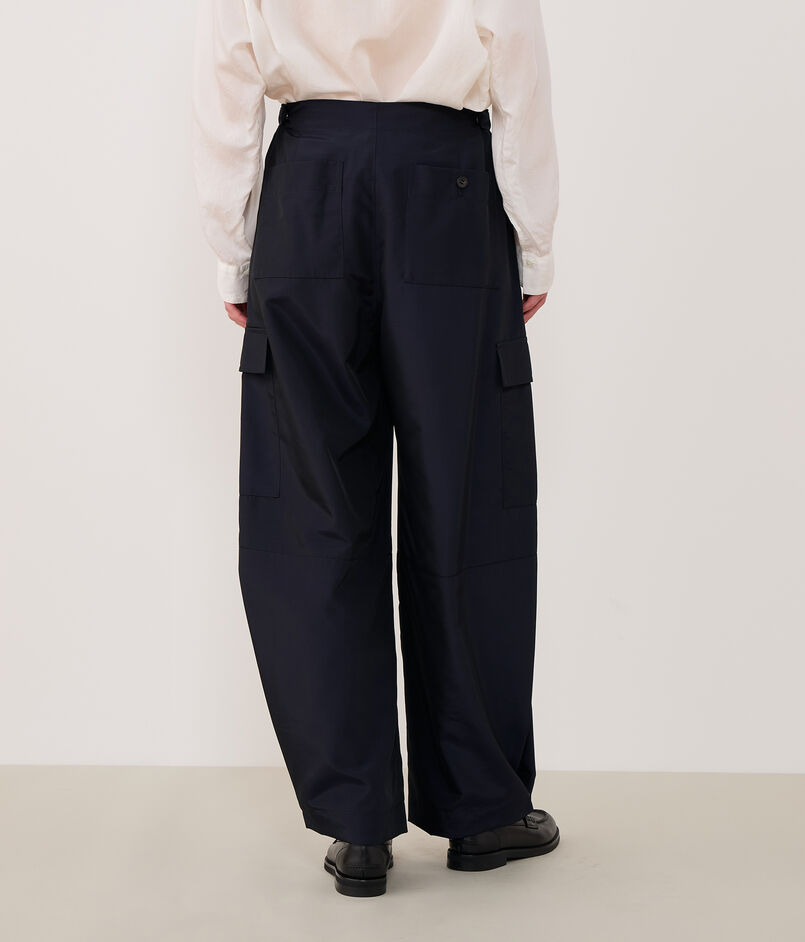 パンツはゆったりとしたシルエットと大きなフラップポケットでメンズアイテムのような印象に。