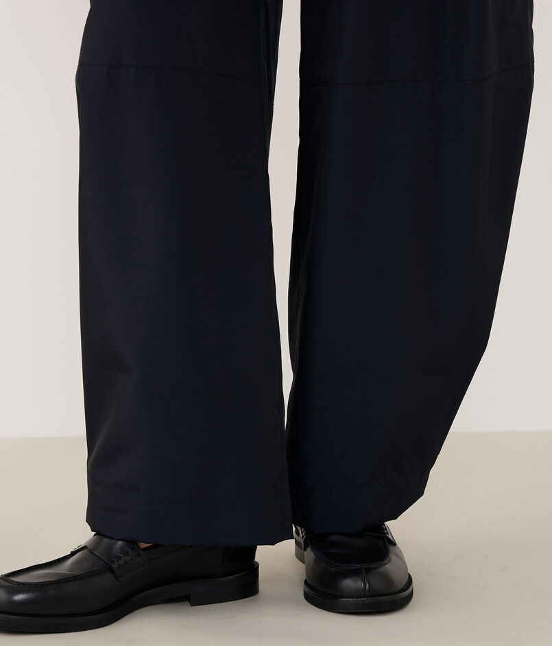 裾部分のスナップボタンを留めれば丸みのあるシルエットに変わり、気分に合わせて異なるバランスをお楽しみいただけます。