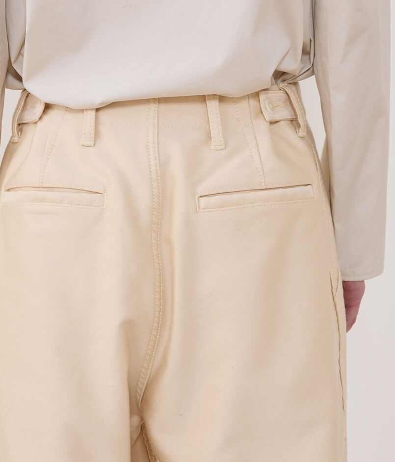 サイドに配したタブの留め方で着こなしに合わせてウエストのフィット感を微調整いただけます。