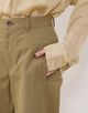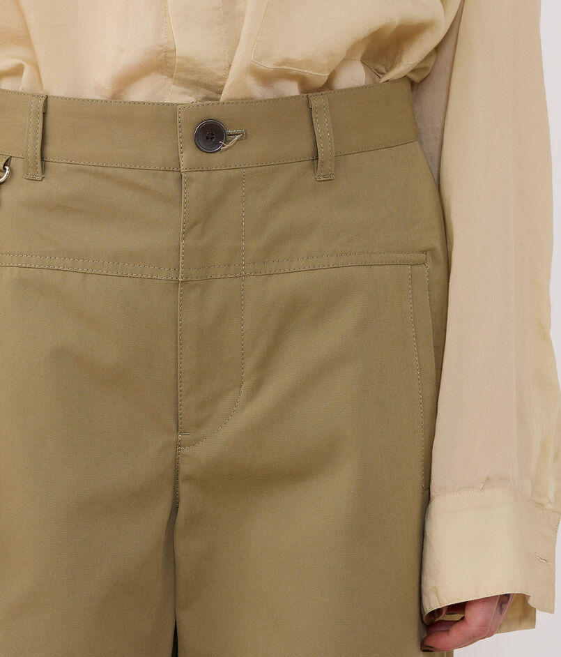 スラッシュポケットでウエスト周りをすっきりとさせつつ、小さなスナップフックで遊び心のあるポイントをプラスしました。
