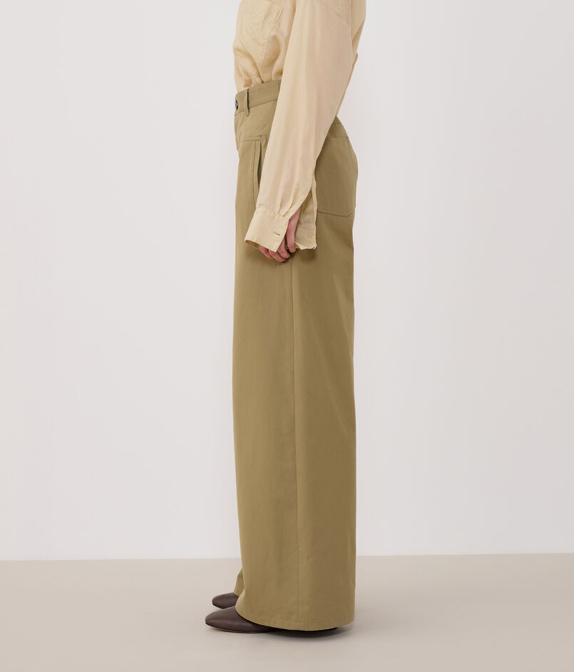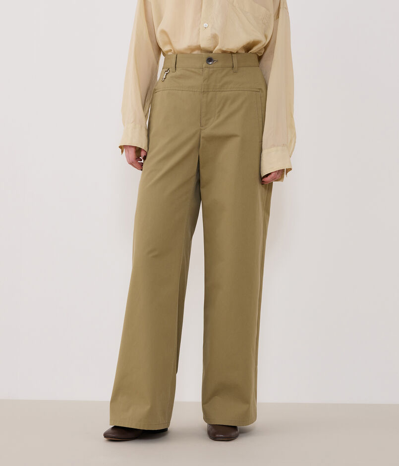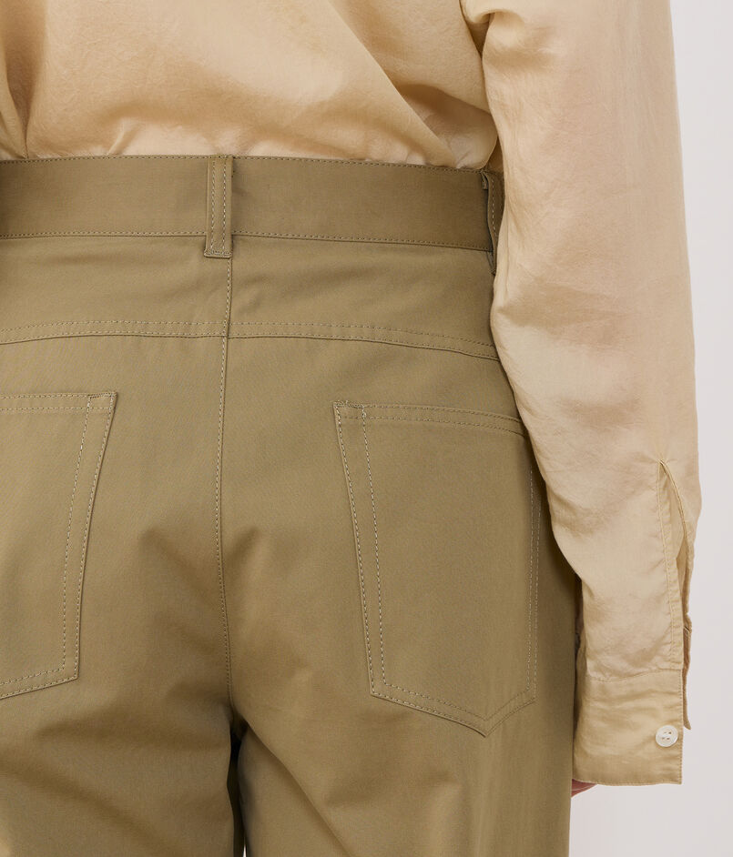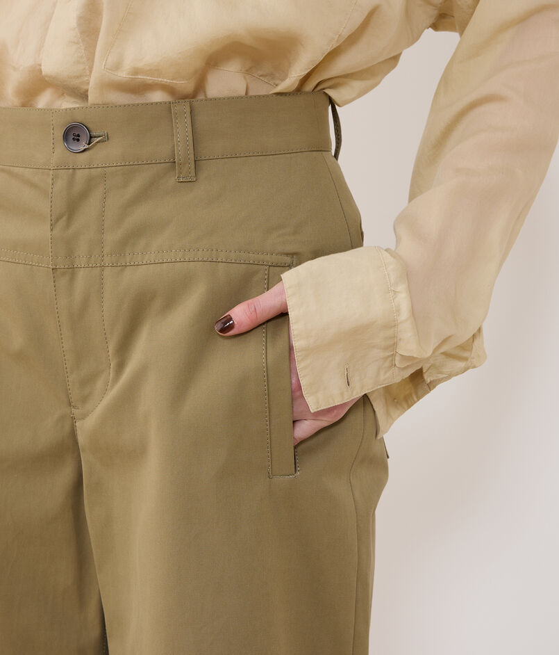 パンツは裾にかけてすとんと落ちるシルエットがクリーンな印象の一着。
