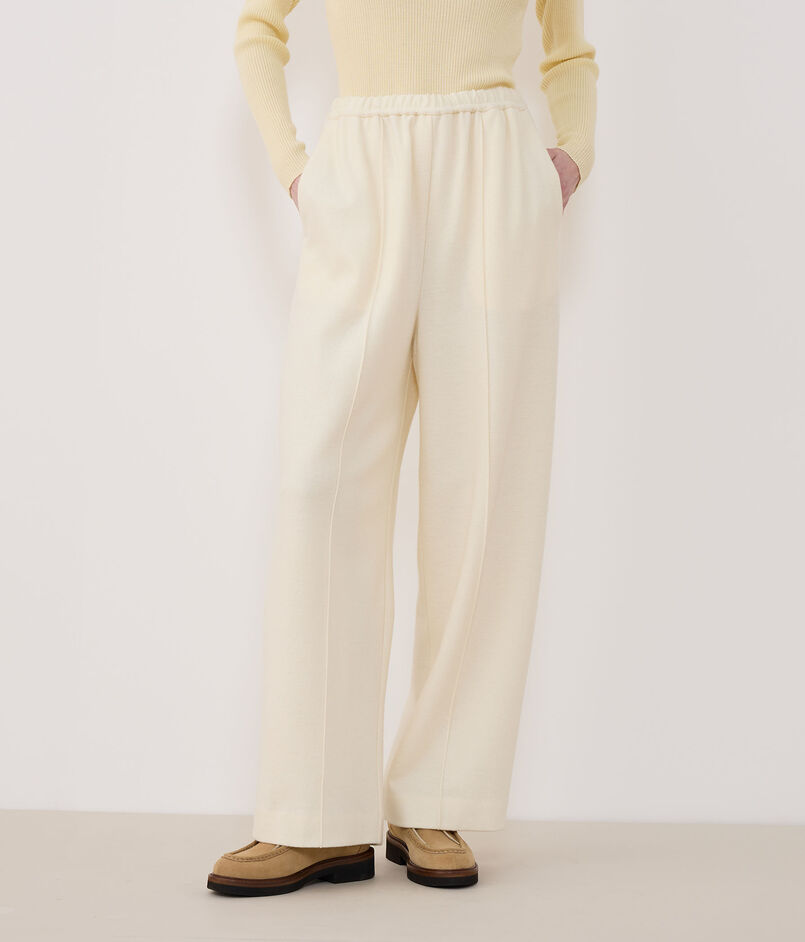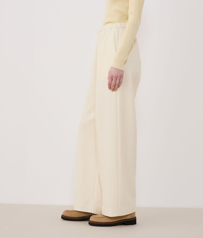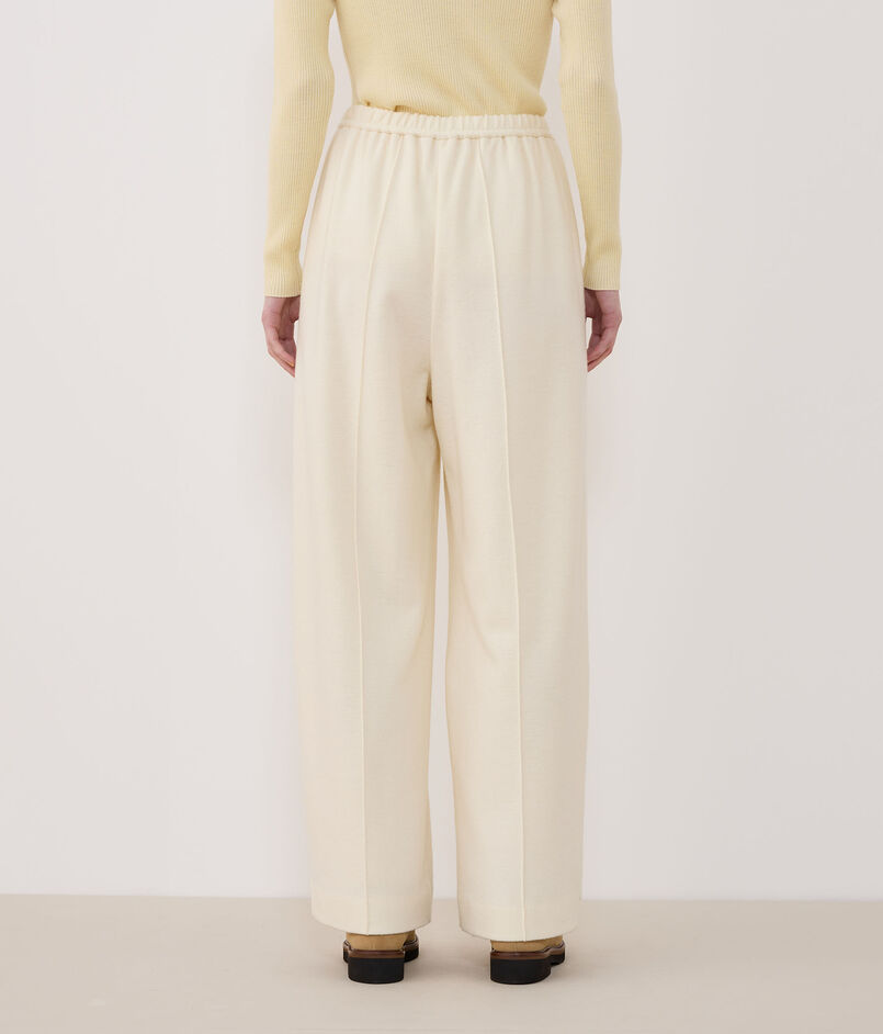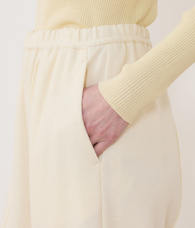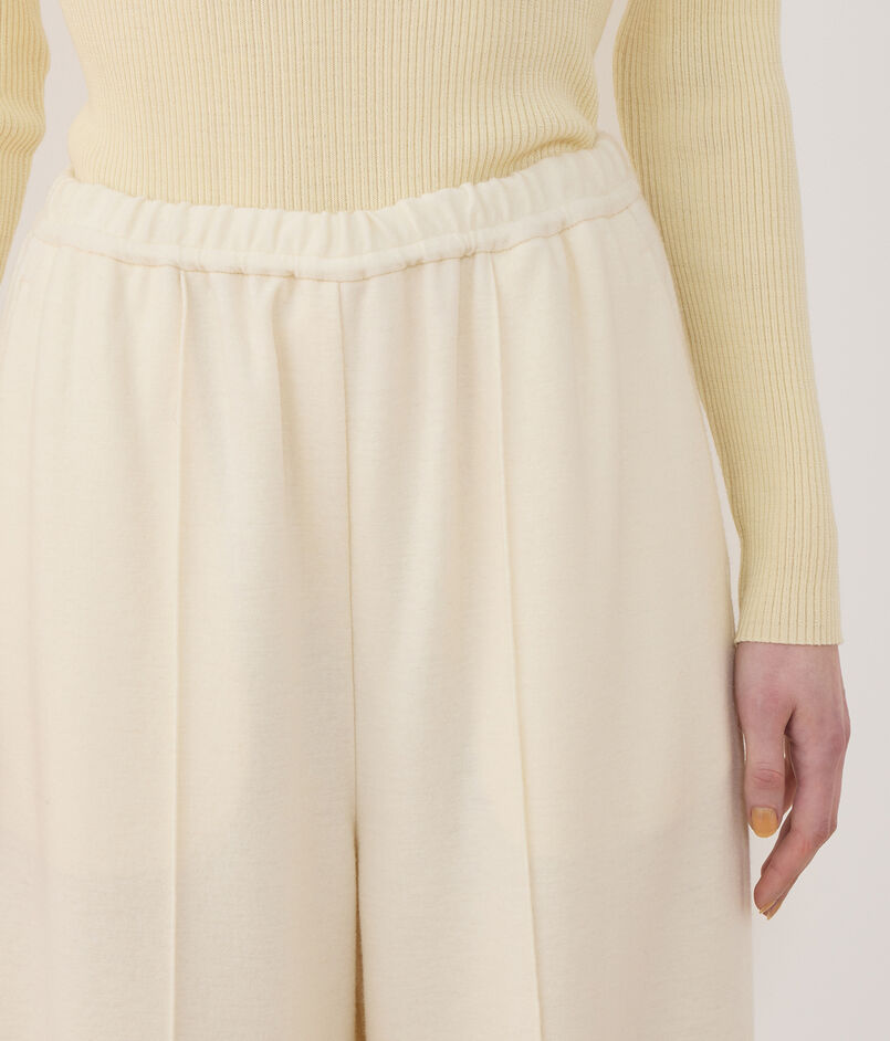 パンツはゆったりとしたシルエットとウエストゴムのデザインでリラックスムード漂う一着。
