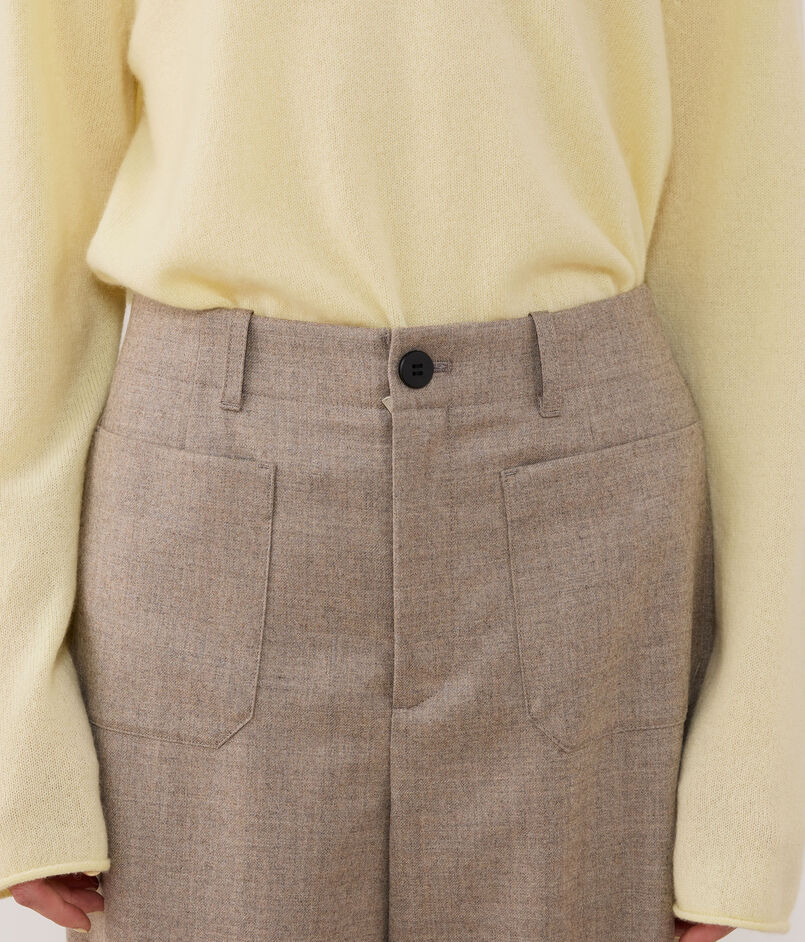 フロントに配したパッチポケットがデザインポイントのパンツ。