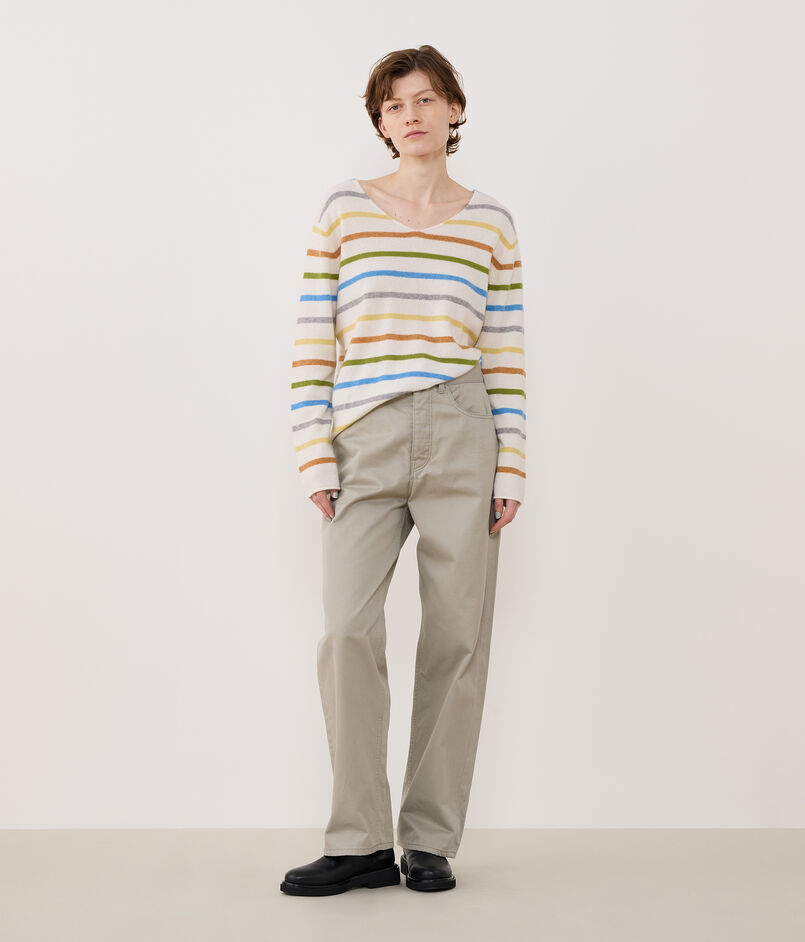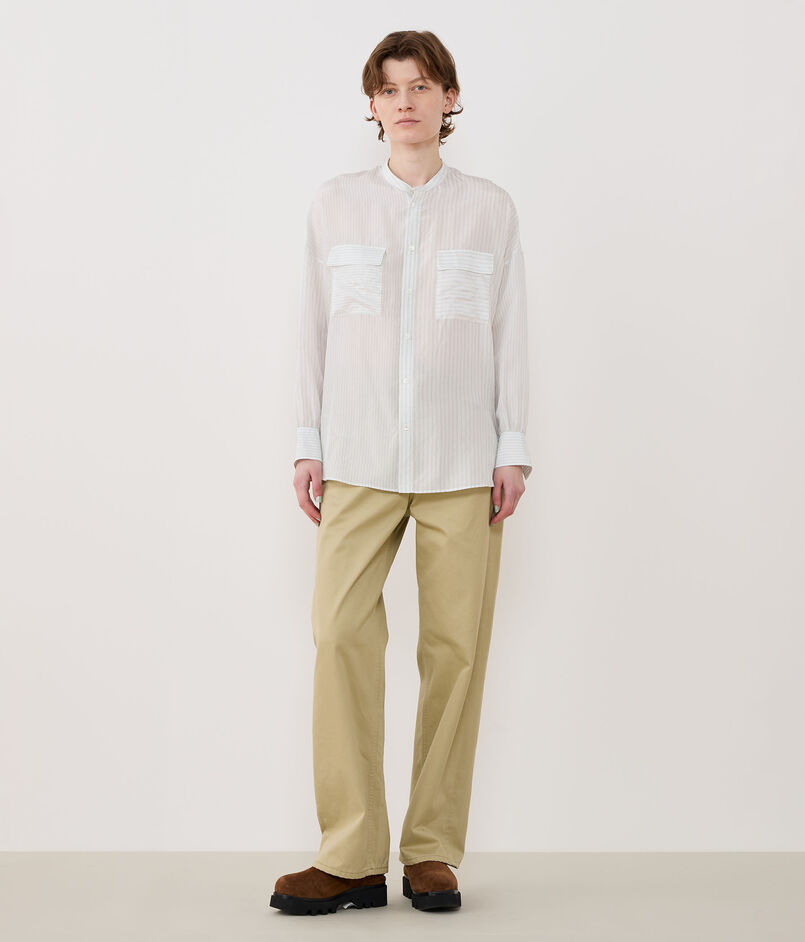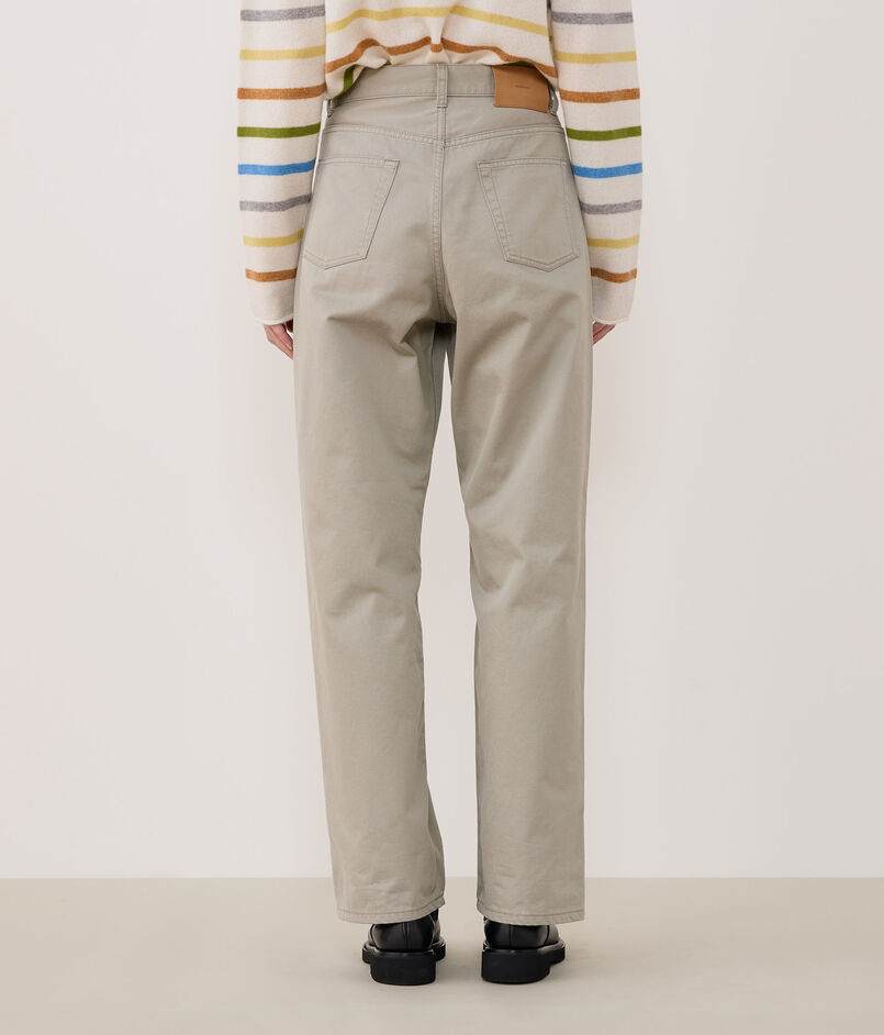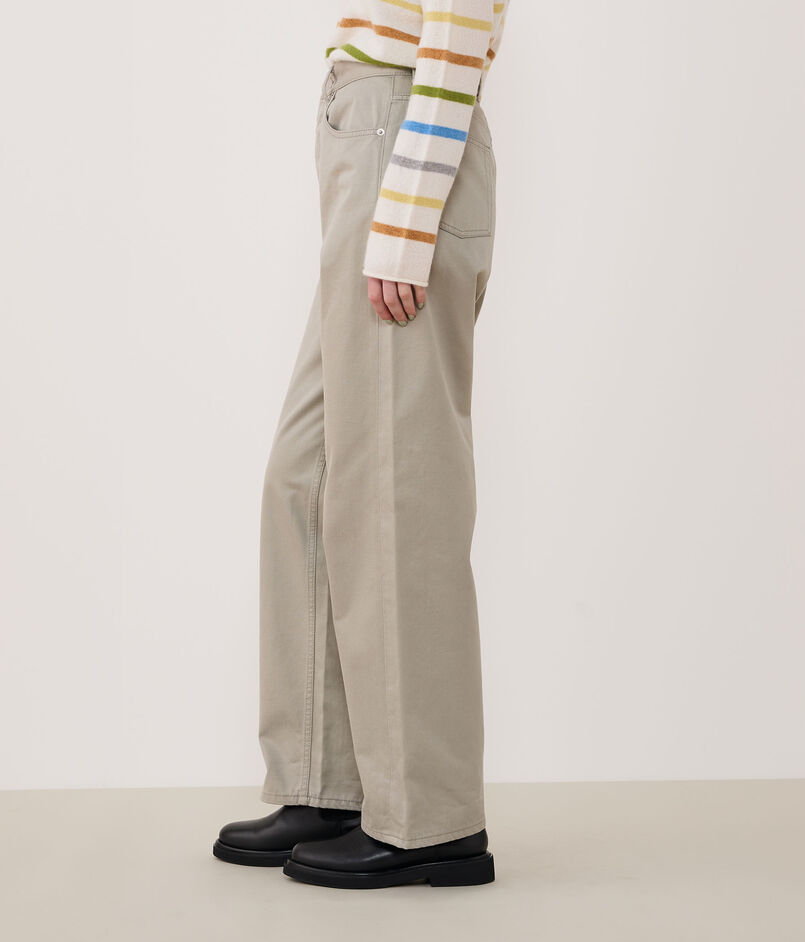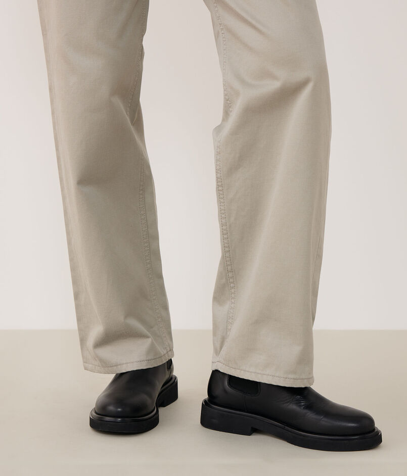 滑らかで上品な光沢感のある超長綿を多本取りした糸と、ハリのある太番手のコットン糸を縦横に使用して織り上げたツイル素材のパンツシリーズ。