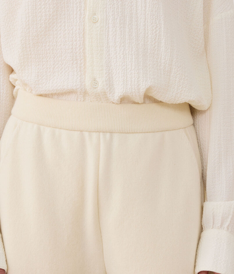 パンツは大人のスエットをイメージした、スポーティーながらもクリーンな雰囲気の一着。