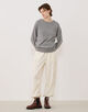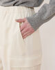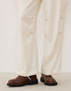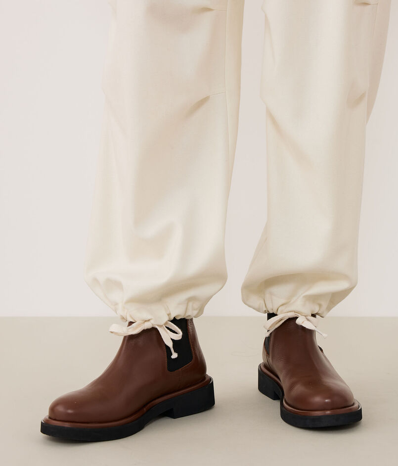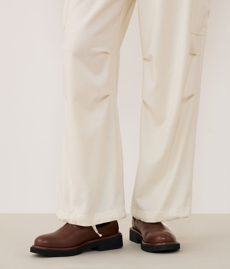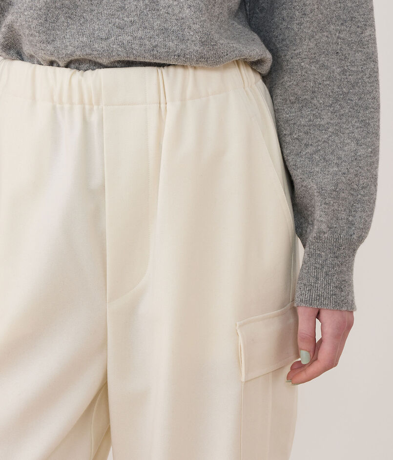 オーストラリア産のメリノウールの紡毛をプレスして毛羽を抑えた、上質なサキソニー素材のボトムスシリーズ。