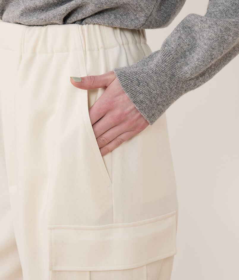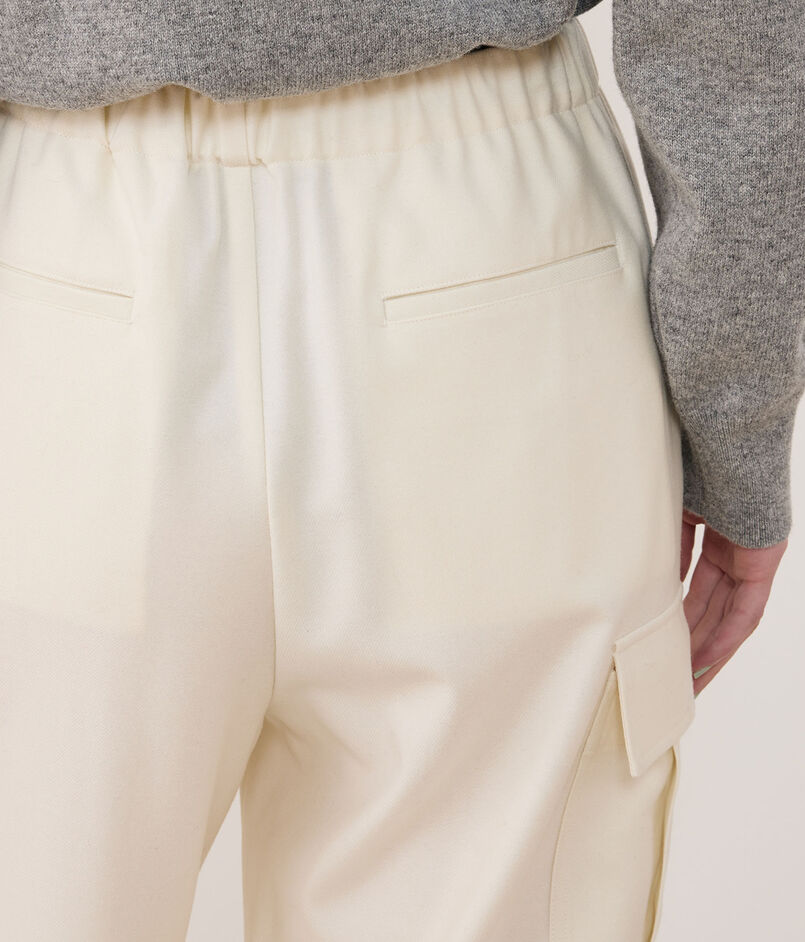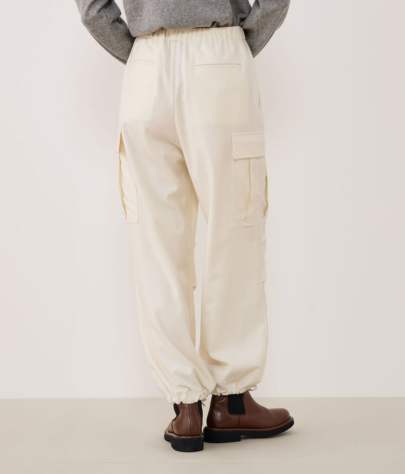 カーゴパンツはミリタリーディテールを取り入れながら、ウエストゴムのデザインでリラックス感もプラスしました。