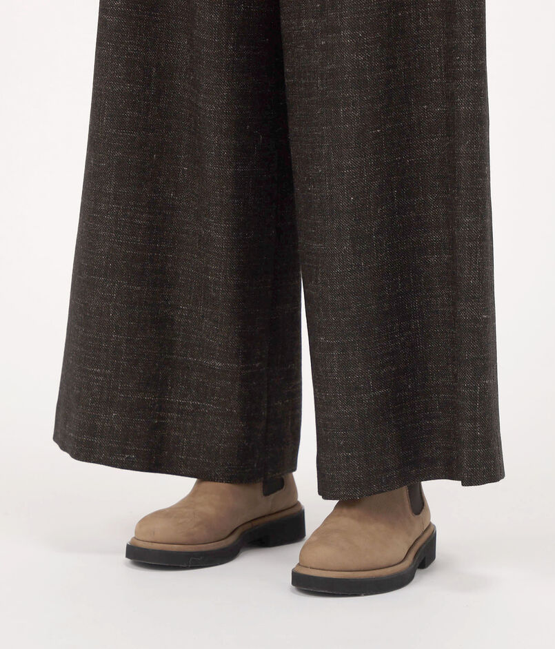 麻特有のネップ感が魅力のフラノ素材を使用したパンツシリーズ。