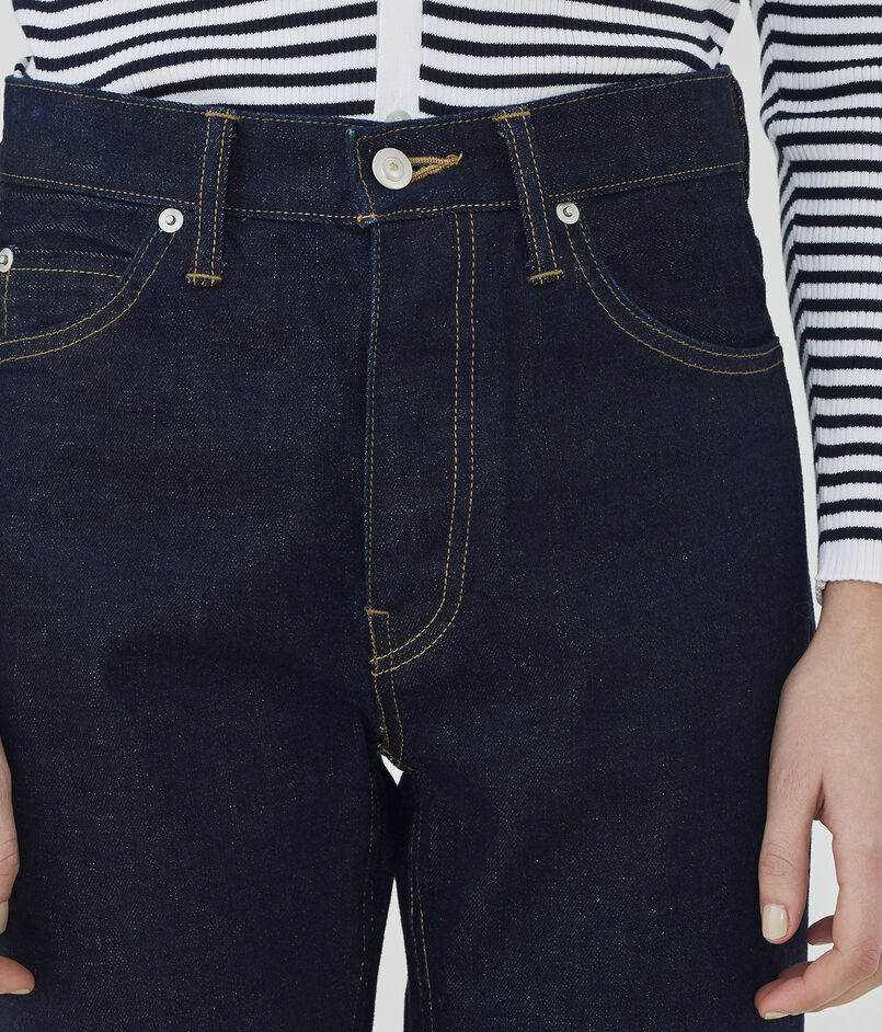 糸を紡績するときにできる落ち綿を集めて再利用し、デニムの命である表面感を出すためムラ糸にして織り上げたオリジナル素材を使用しています。