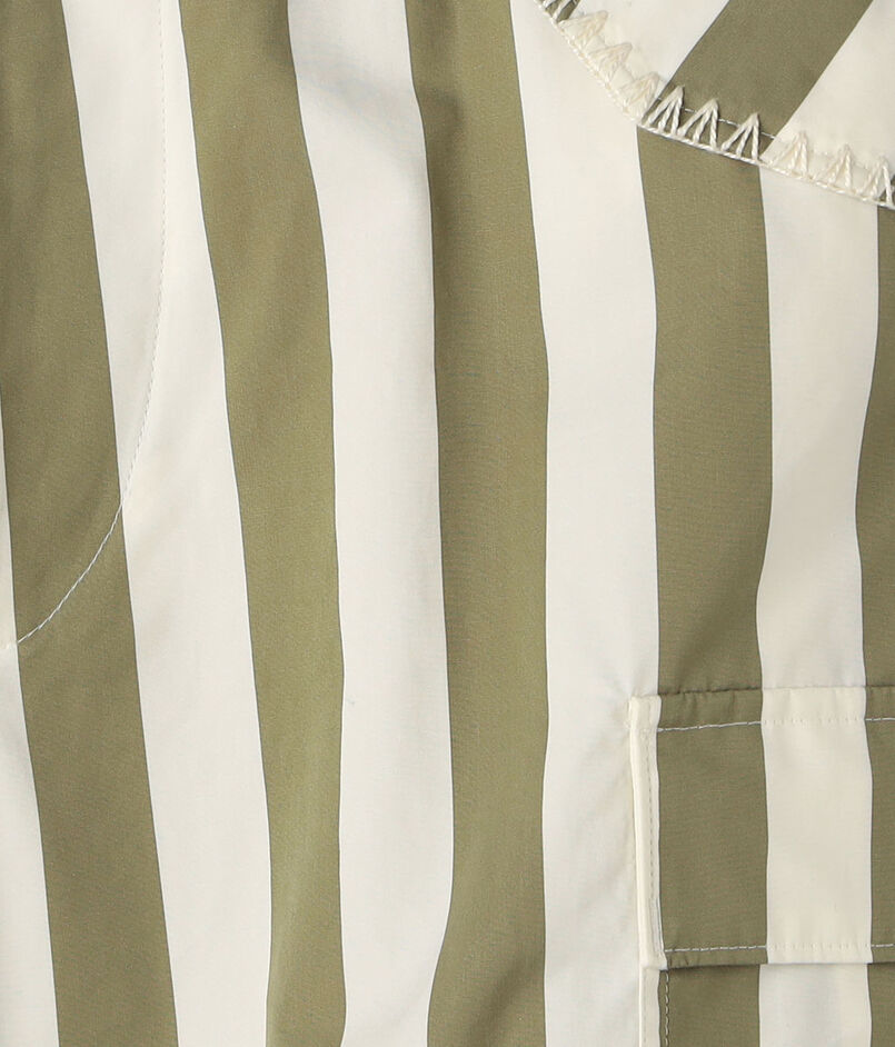 イタリアメーカーのコットンポプリン素材を使用しており、大柄ながらもコントラストを抑えたオリーブとエクリュの穏やかなトーンが上品で落ち着いた印象をもたらしています。