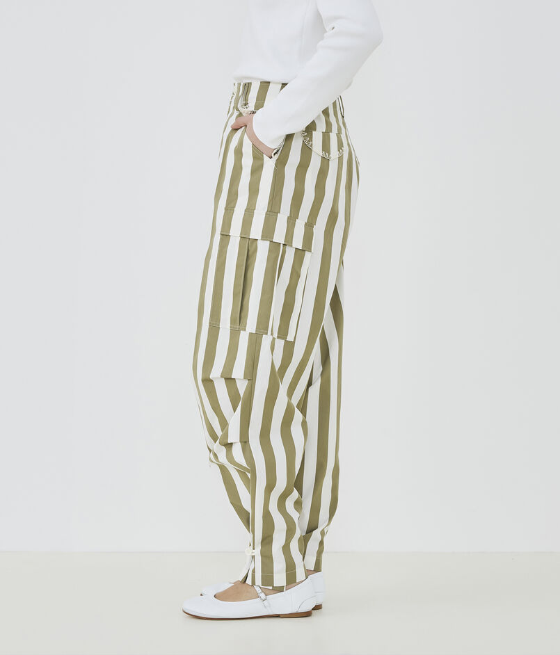 パンツはミリタリーカーゴパンツをベースにモダンなバランスに仕上げた一着。