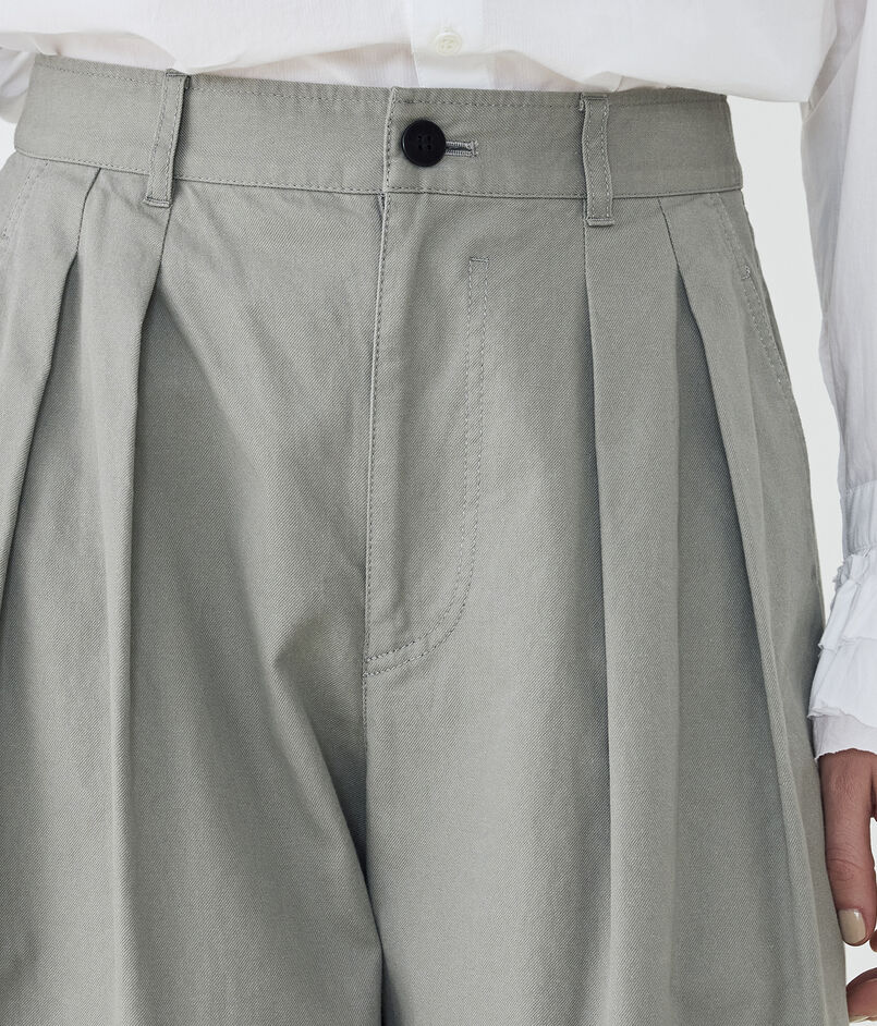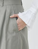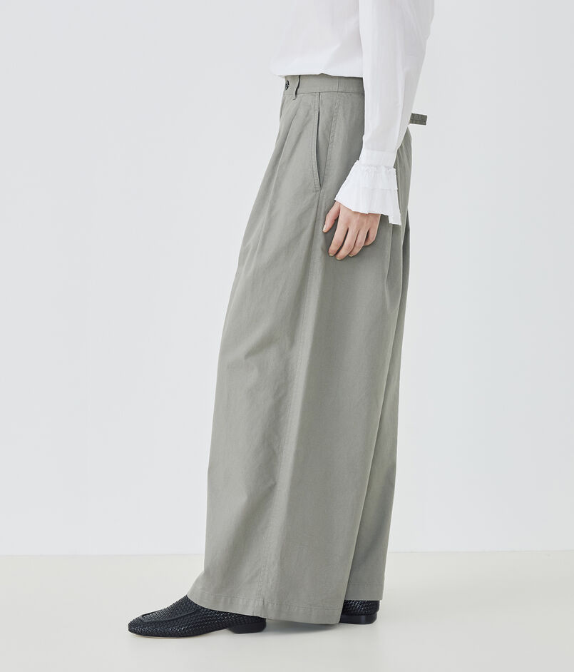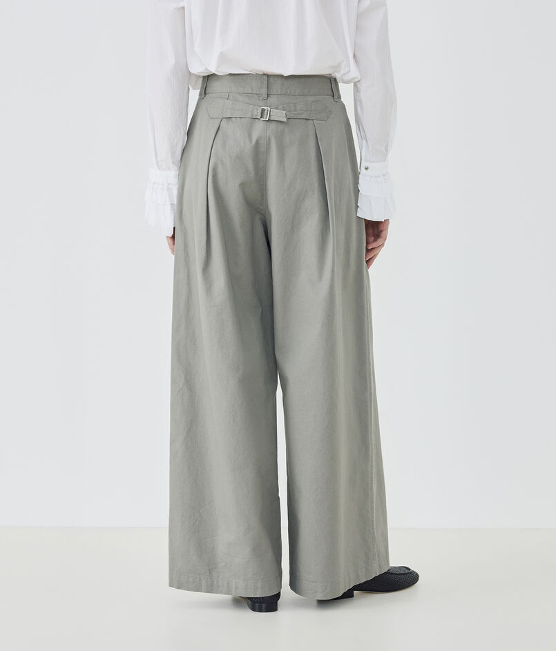 バックに施したタックとアジャストベルトの引き締めで完成する立体的なフォルムで、後ろ姿に個性が宿るパンツ。