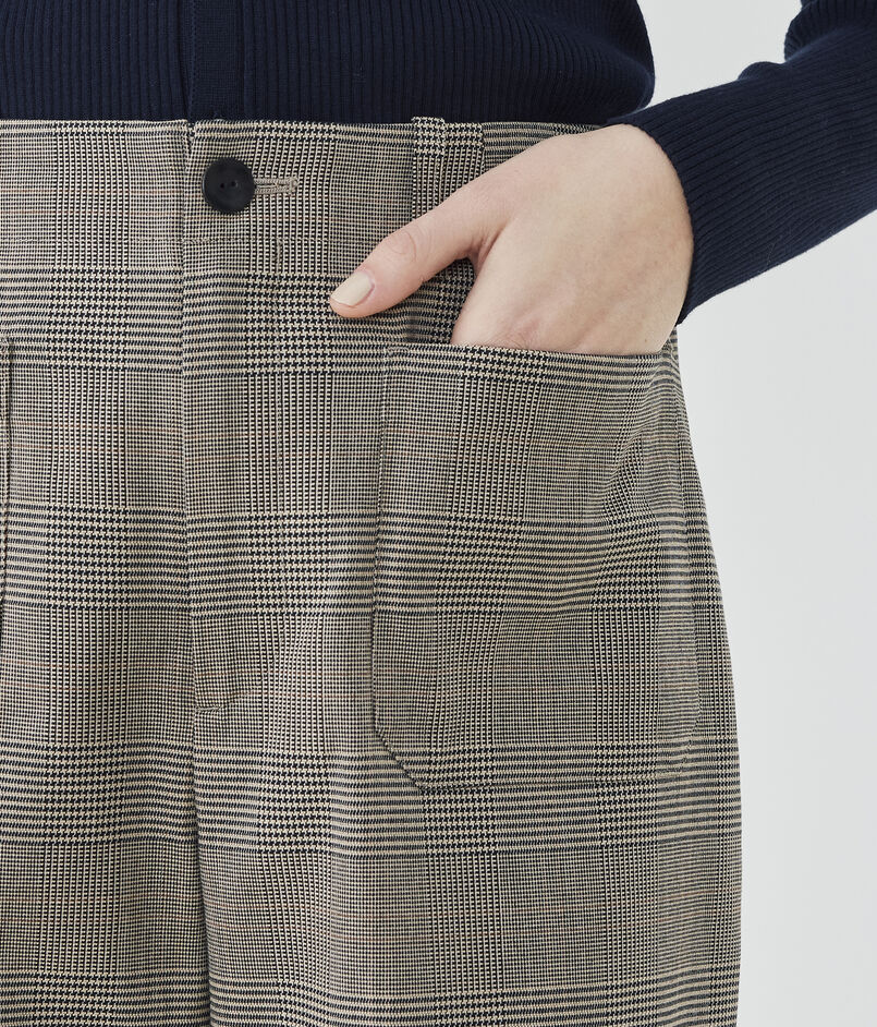 ブーツやローファーなどシューズが映える丈バランスもポイント。