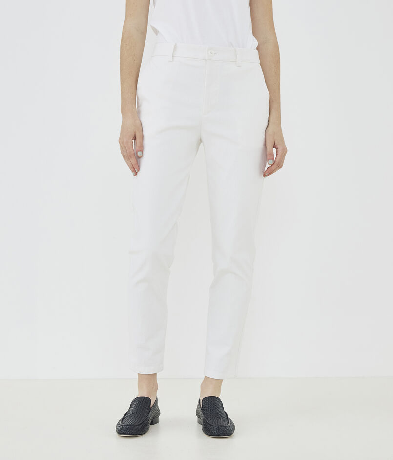 スリムパンツはヒップから膝までほど良いゆとりを持たせることでタイトになり過ぎず、すっきりとしつつも抜け感のある印象に。