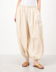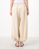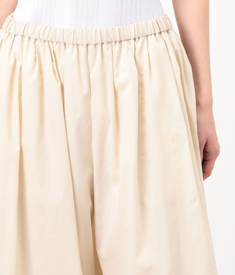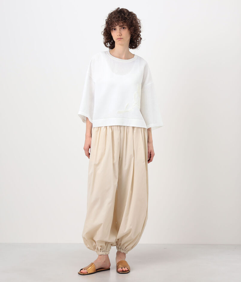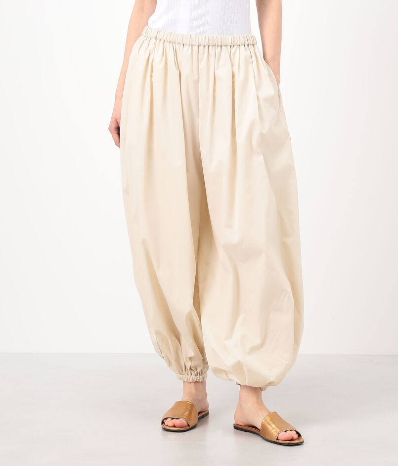 パンツはたっぷりとした分量感のあるバルーンシルエットが今季らしい印象の一着。