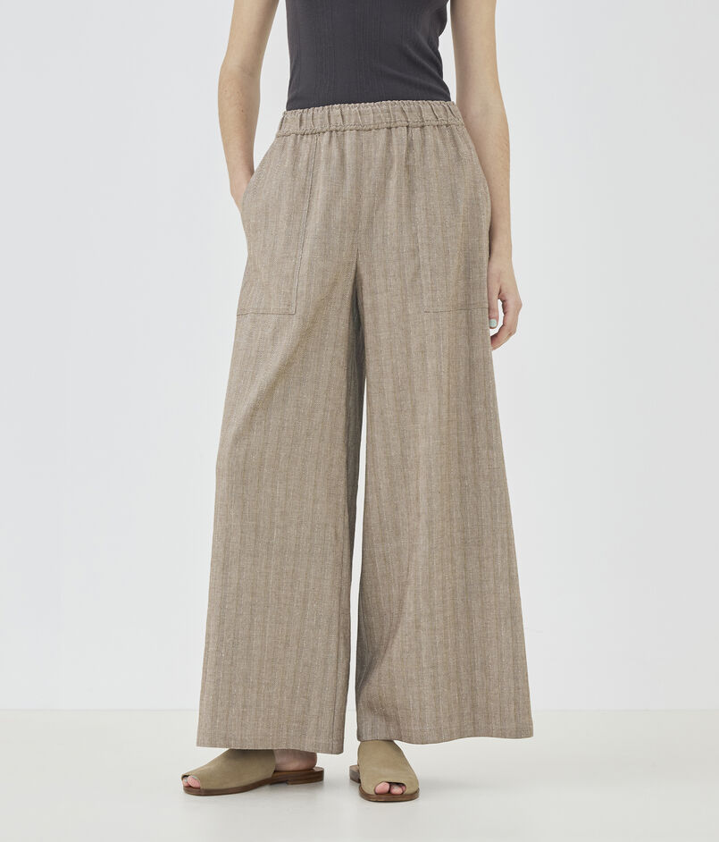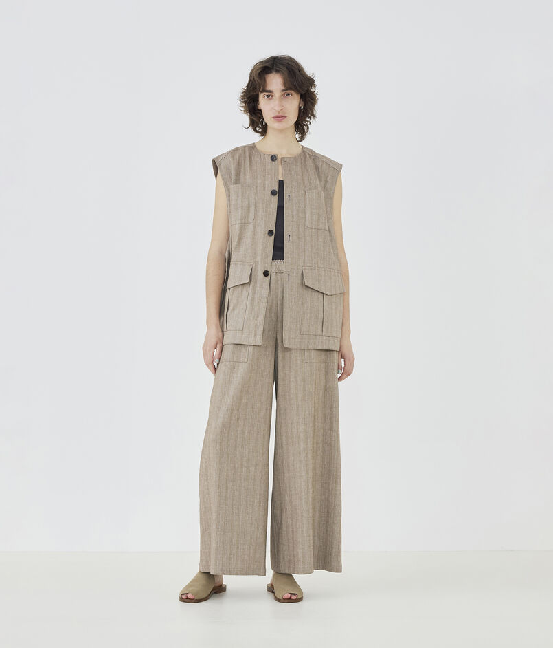リノシャンブレーストライプ ワイドギャザーパンツ