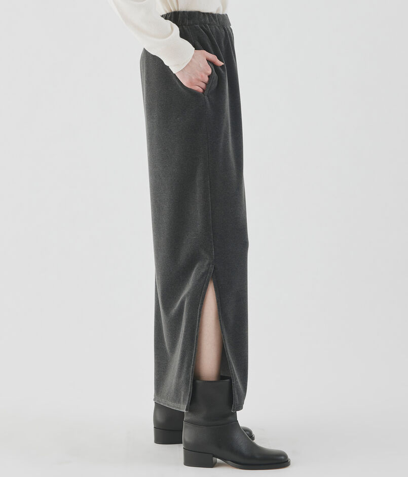 動くたびにスリットからちらりと脚が覗き、スタイリングにヘルシーな雰囲気をプラスしてくれます。