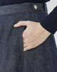 ウエストのフィット感を微調整できるよう、サイドにボタンをあしらいました。