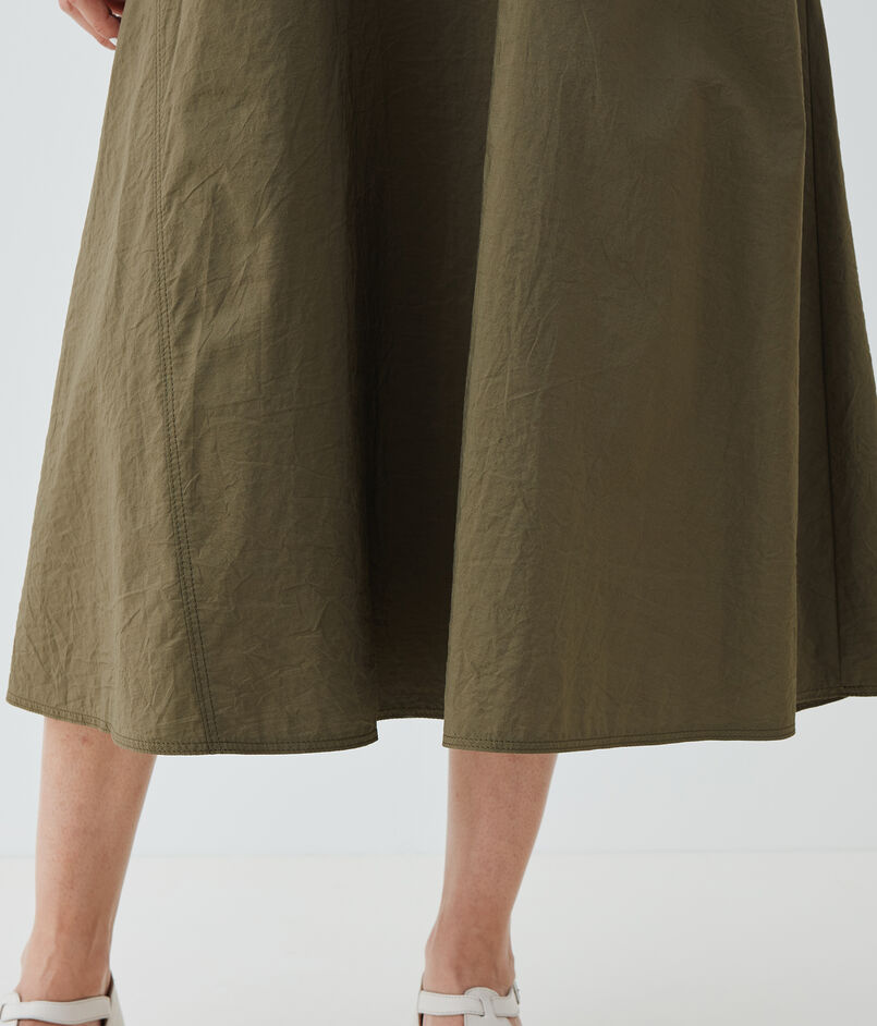 ビンテージの織機によって高密度に織り上げることでドライでさらっとした風合いが生まれ、この織機ならではの独特の膨らみを感じていただけます。