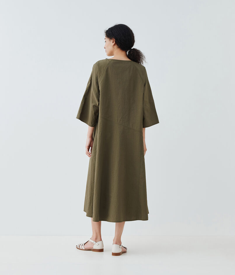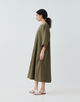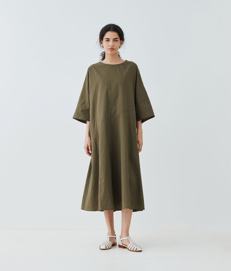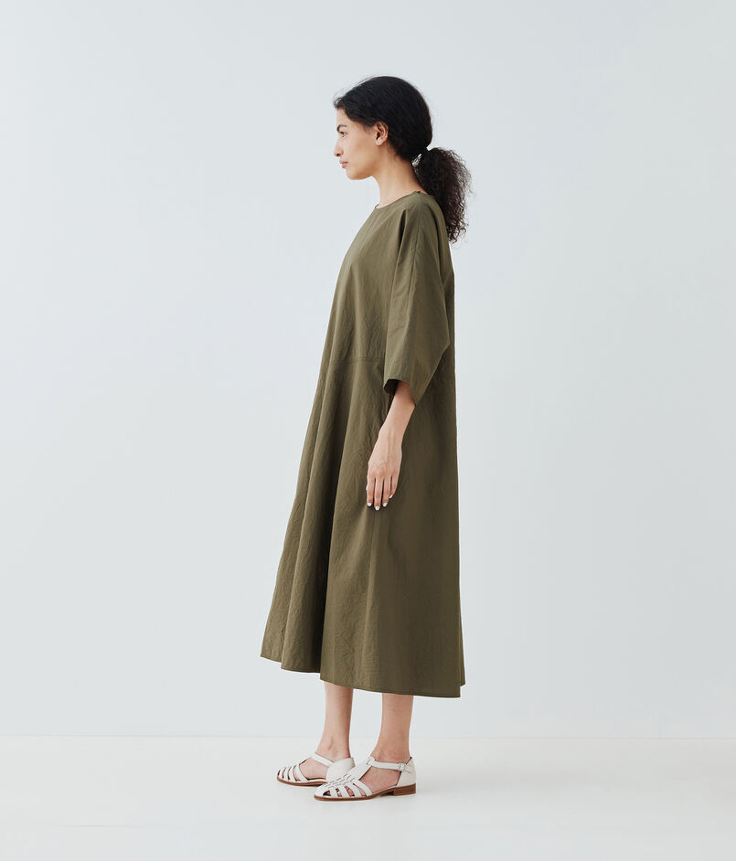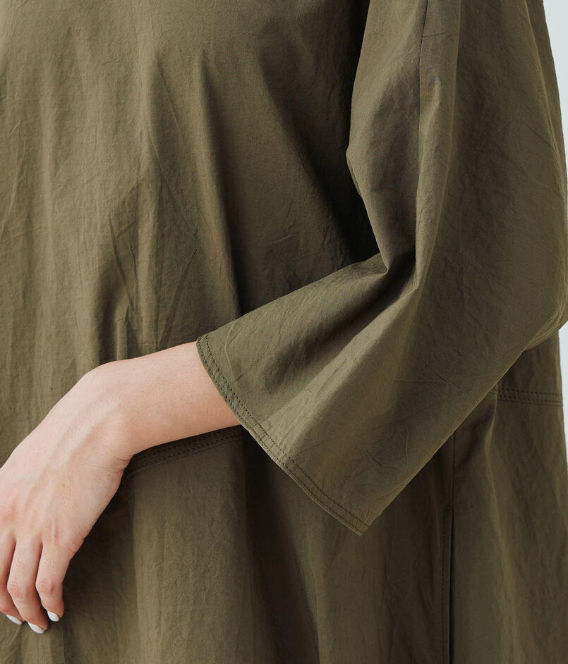 ワンピースは分量感たっぷりの身頃にドルマンスリーブデザインでリラクシーな着心地でありながら、華奢に見えする一着。