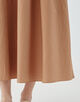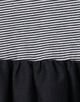 深めのラウンドネックですっきりとしたトップスと、ウエスト部分にふんだんにギャザーを寄せることでふんわりとしたフォルムのボトムのコントラストがポイント。