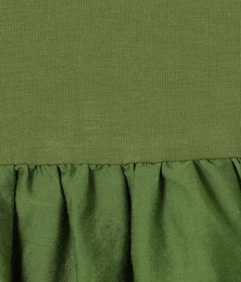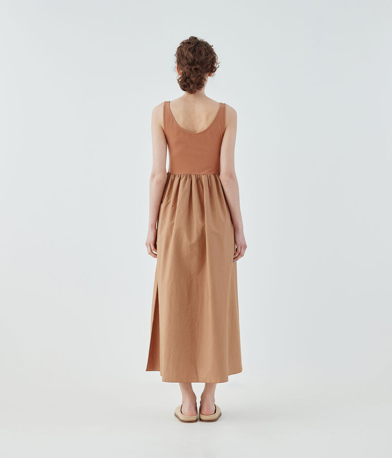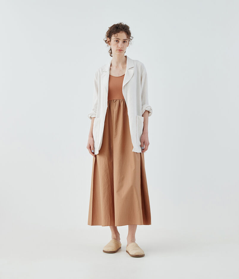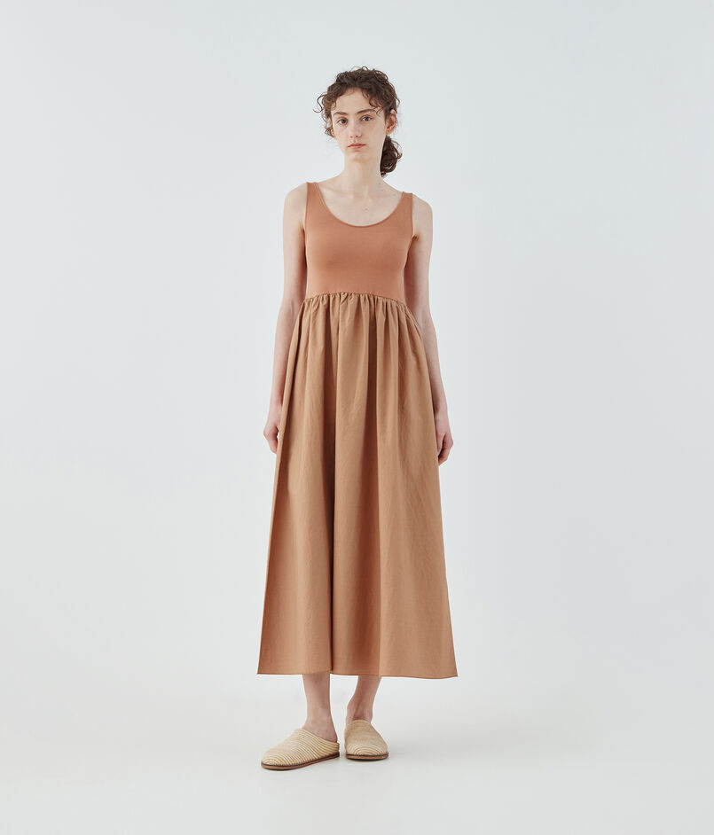 インド産スビンコットンのジャージー素材とコットンシルクの布帛素材をコンビ使いしたワンピース。