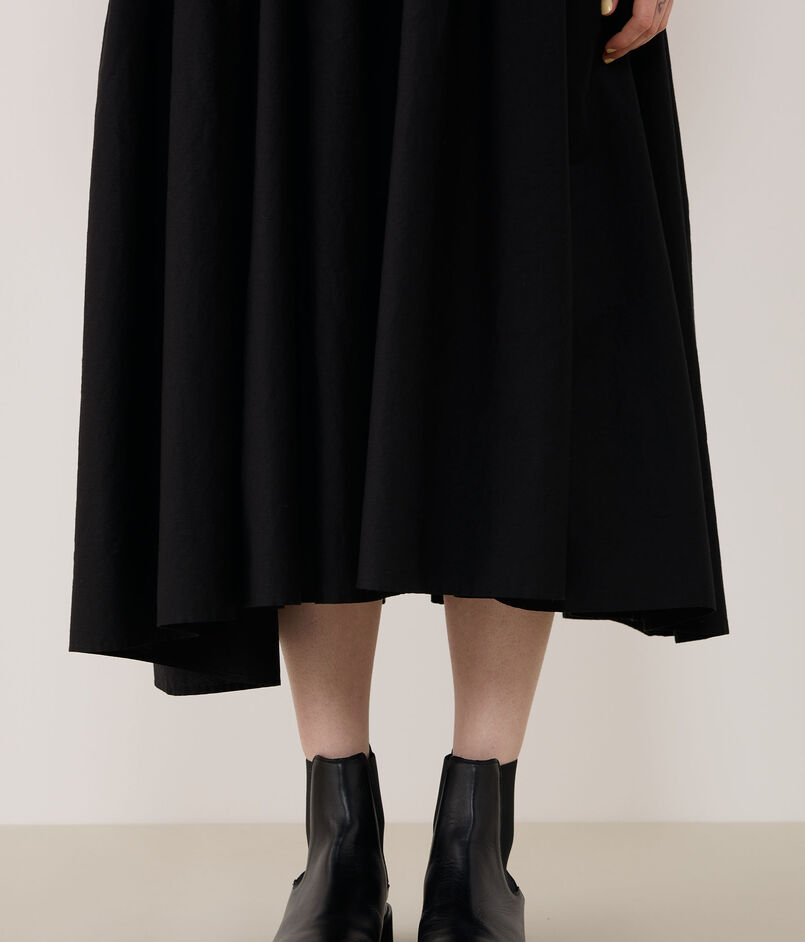 長めの丈感ながら軽やかな印象で、フラットシューズやショートブーツなどとも相性抜群です。