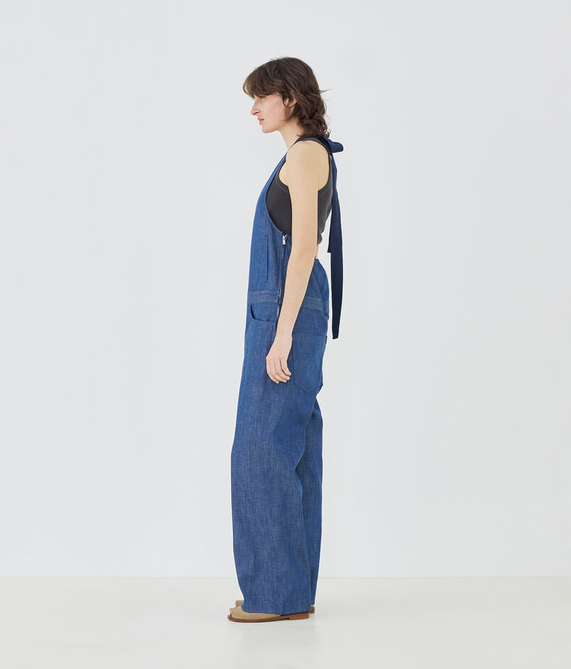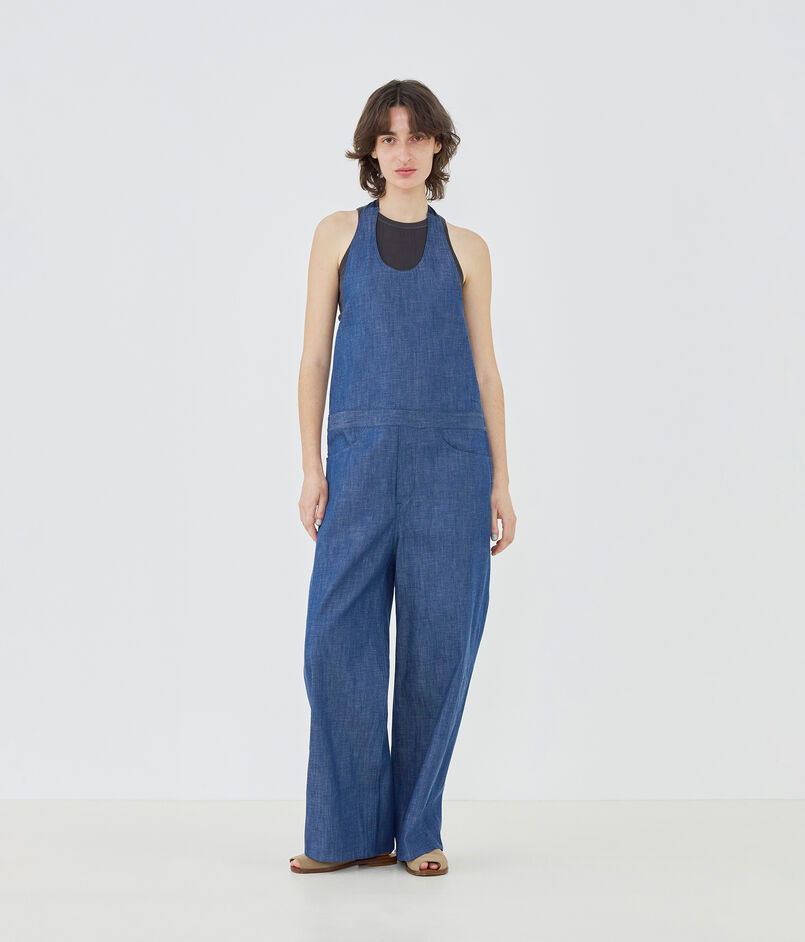 ホルターネックデザインのサロペットは身体のラインを拾わないゆったりとしたシルエットで、エフォートレスな着こなしが決まる一着。