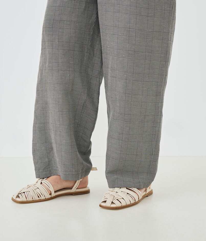 足元にフラットサンダルを合わせた抜け感のある着こなしがおすすめ。