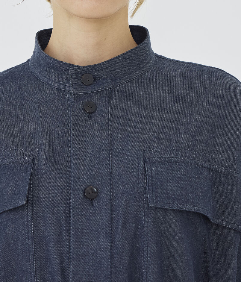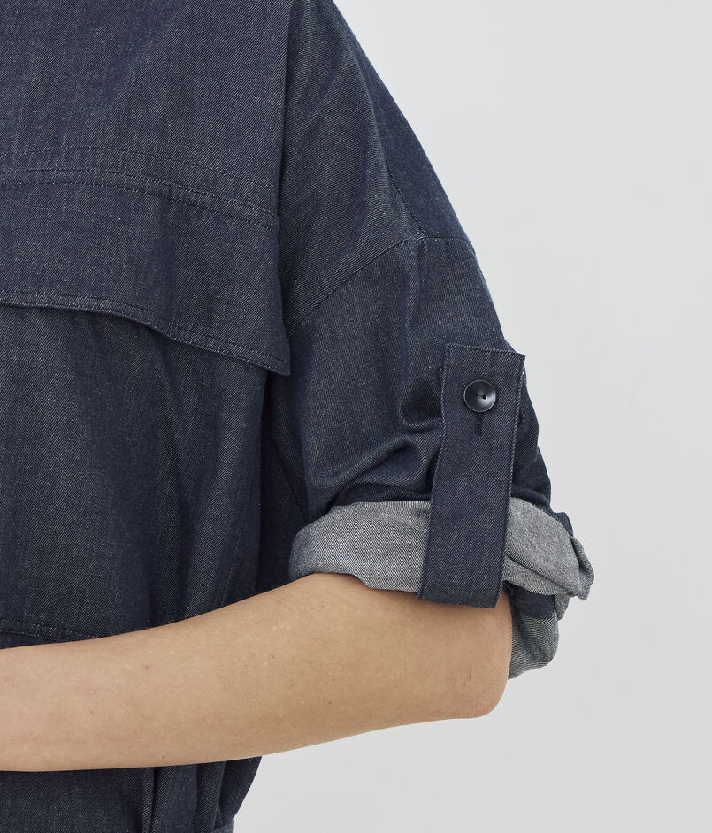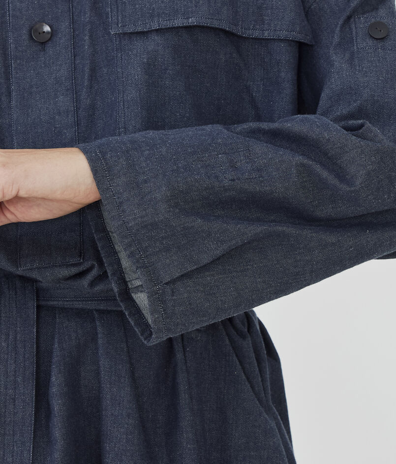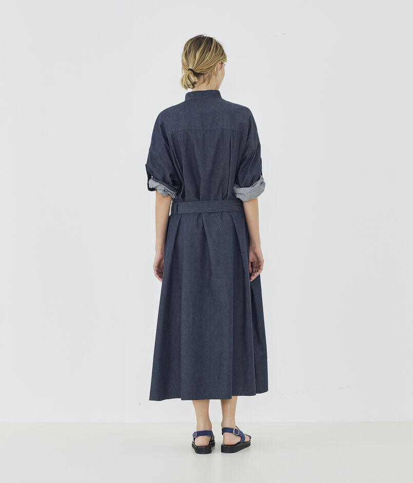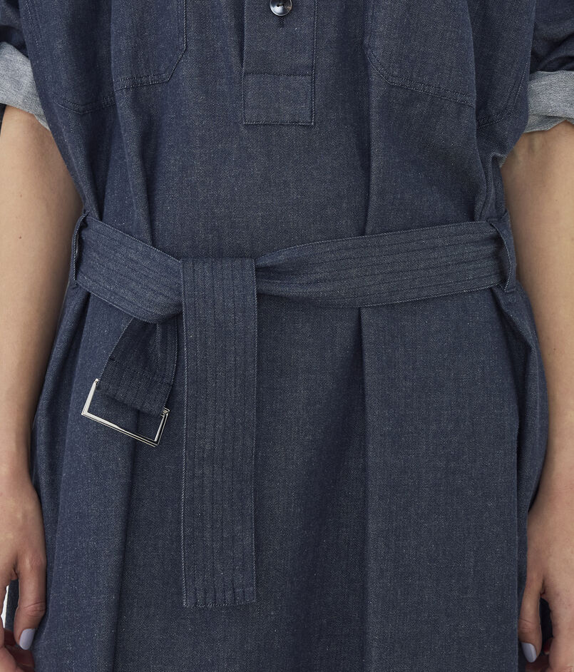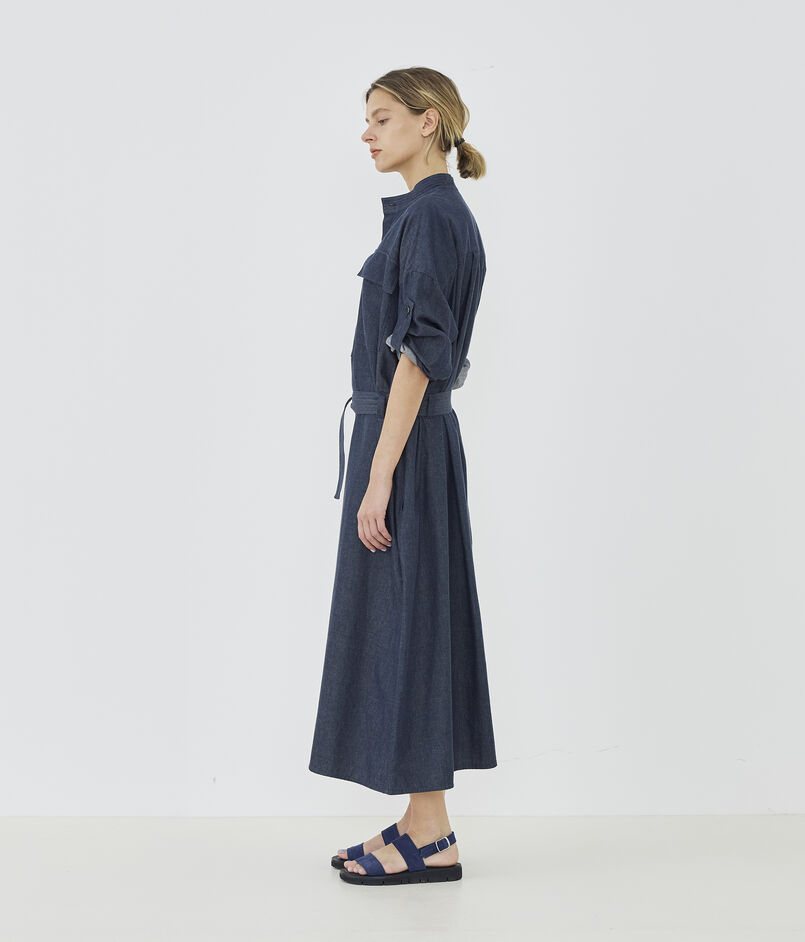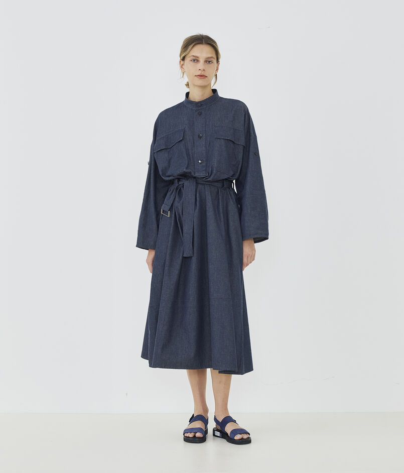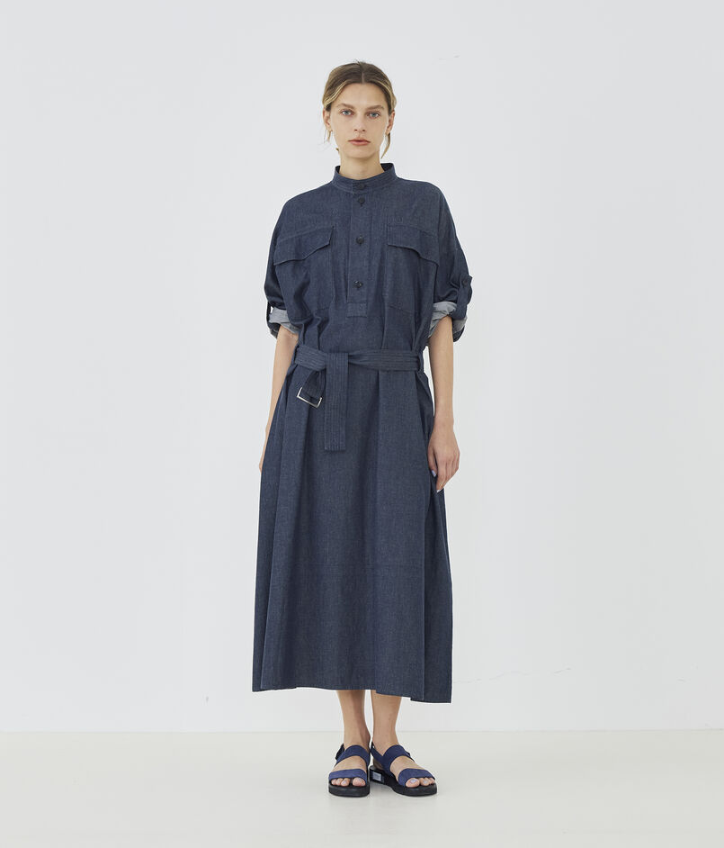 コットンダンガリー ベルテッドシャツワンピース