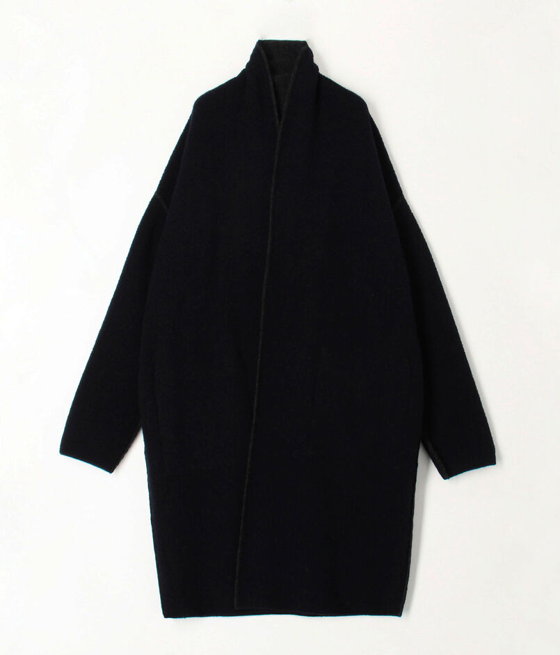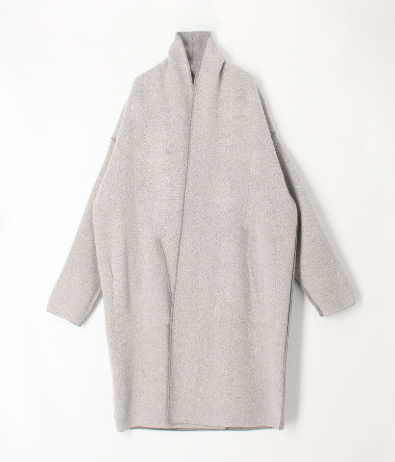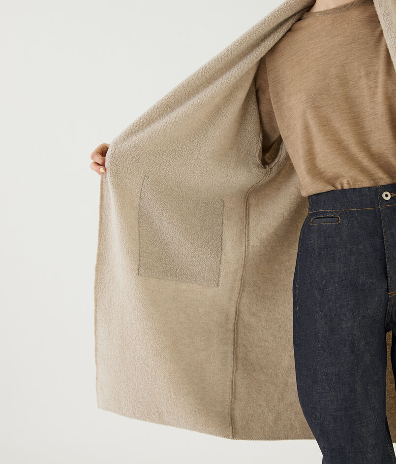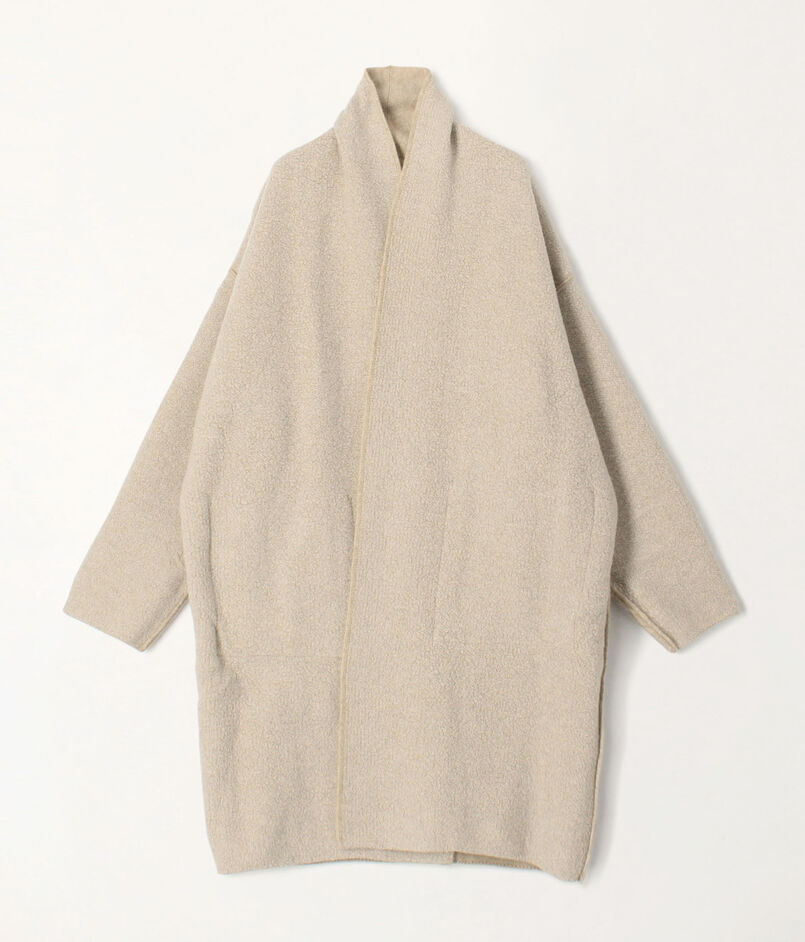 オーストラリアのメリノ種を原料にした紡毛糸で編み立てたダブルフェイスのパイル素材を使用したニットコート。