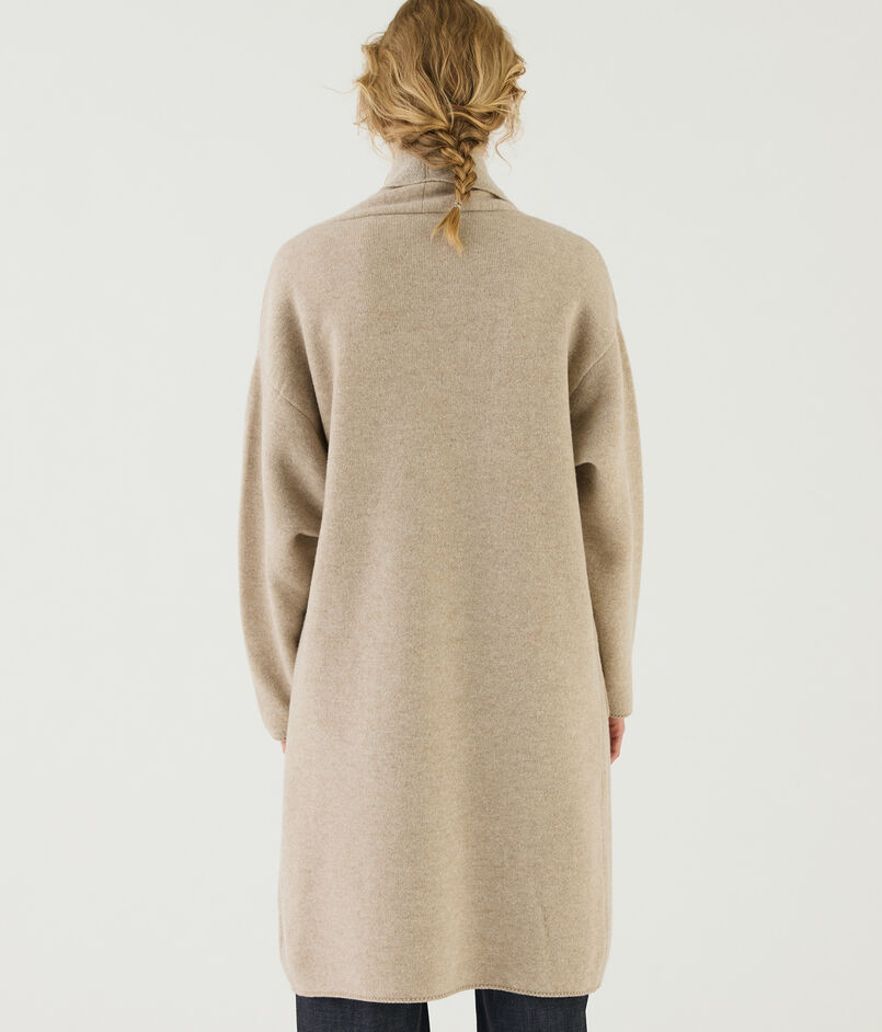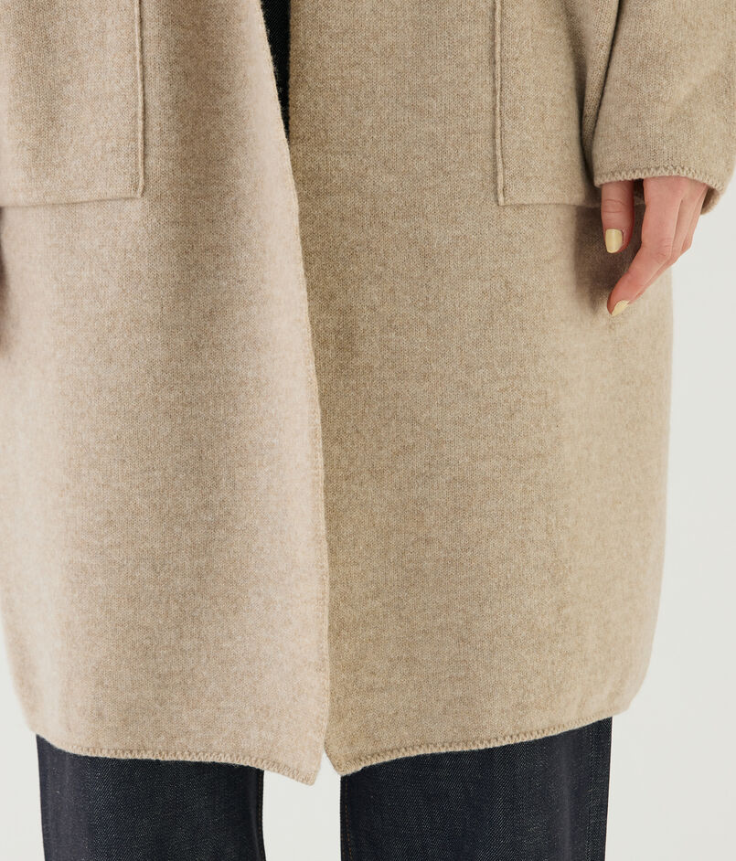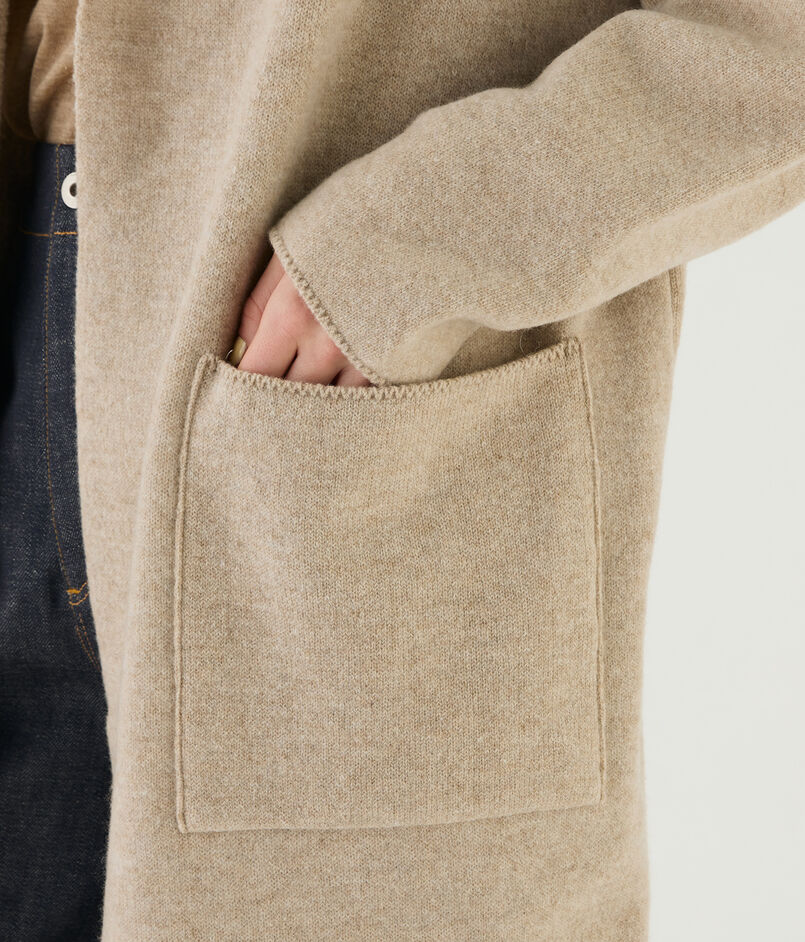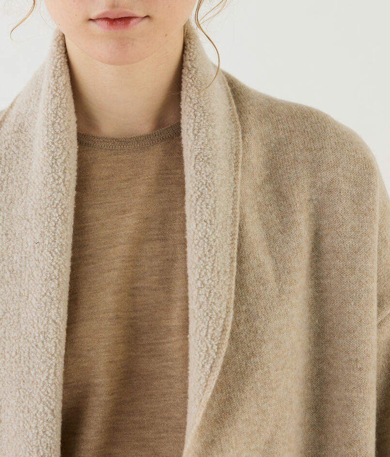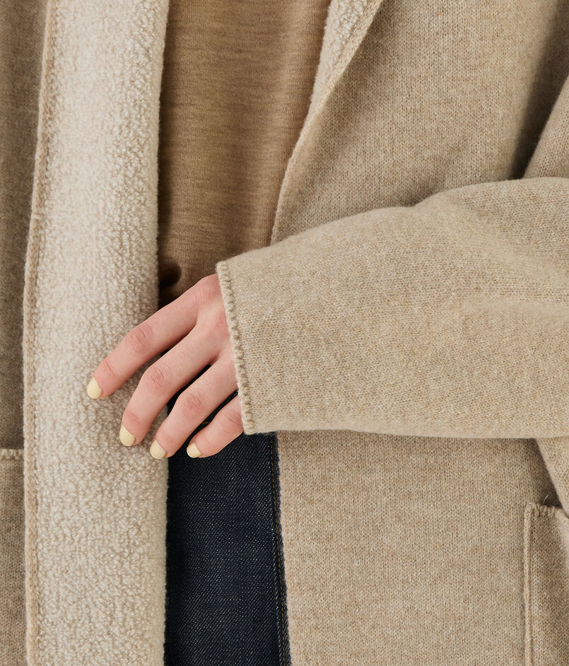 オーストラリアのメリノ種を原料にした紡毛糸で編み立てたダブルフェイスのパイル素材を使用したニットコート。