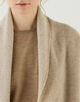 身体を包み込むフォルムにショールカラー、丸みのある肩のラインで柔らかな女性らしい印象の一着。