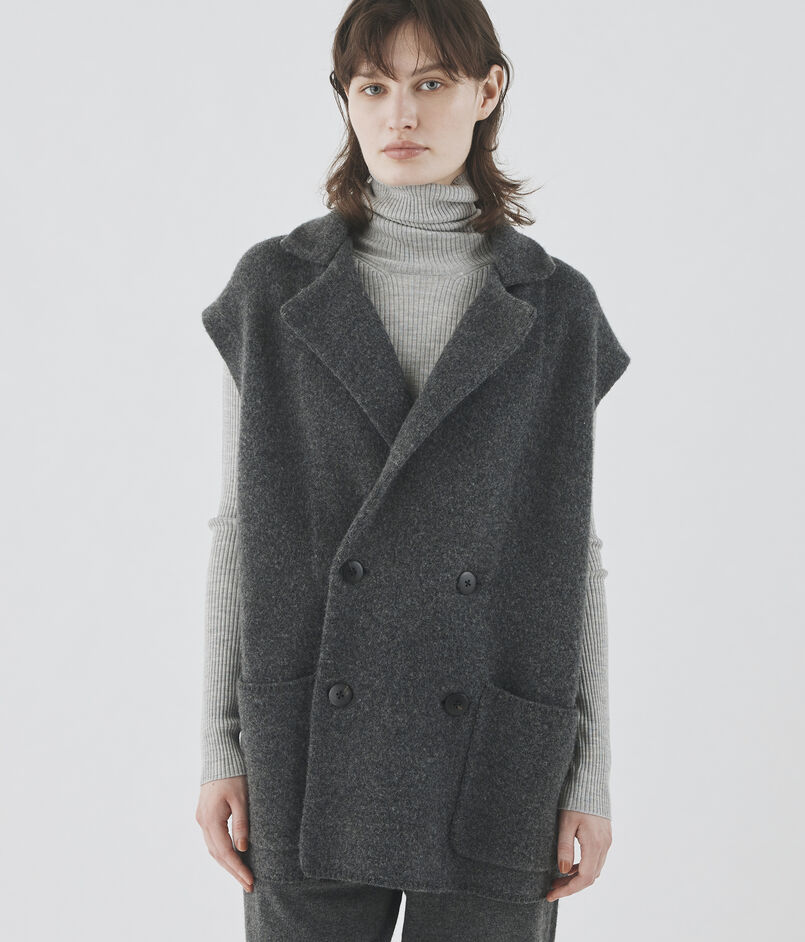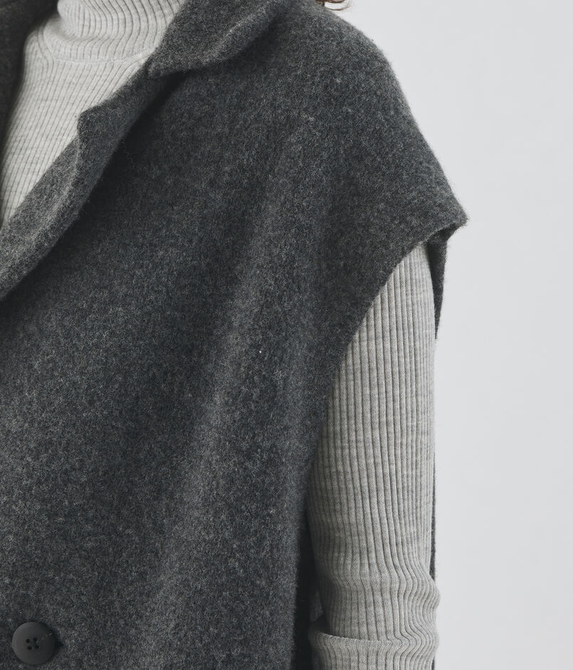 ダブルブレストジャケットの袖を外したようなデザインがポイント。